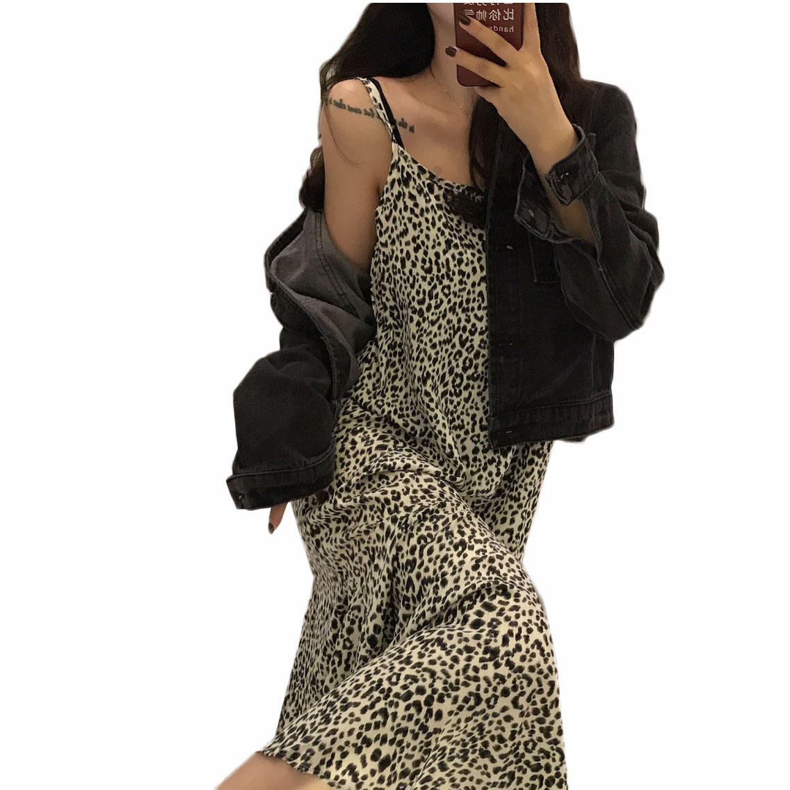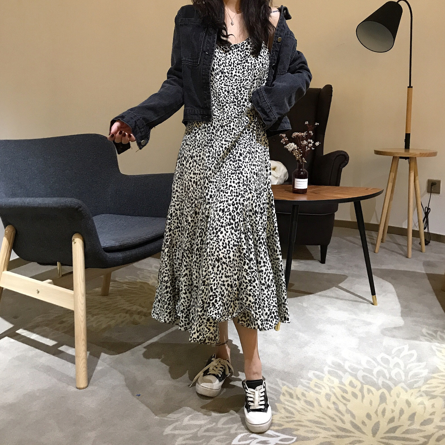 慵懶風秋裝女2018新款復古夾克牛仔外套女春秋+純色V領吊帶連衣裙