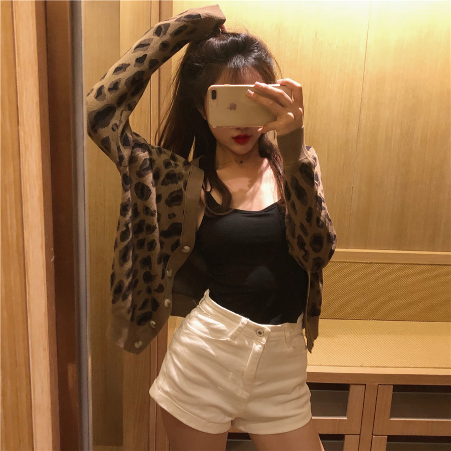 / 2018秋裝新款韓版時尚外套女百搭chic復古撞色豹紋v領針織開衫潮