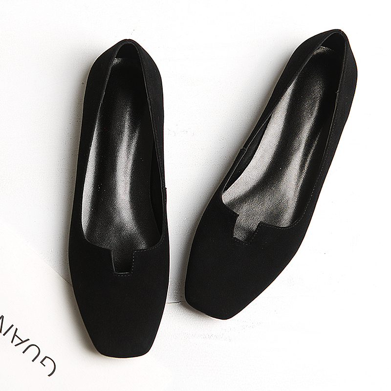 春新款方頭平底單鞋女豆豆鞋歐美絨面平跟休閑鞋一腳蹬懶人鞋