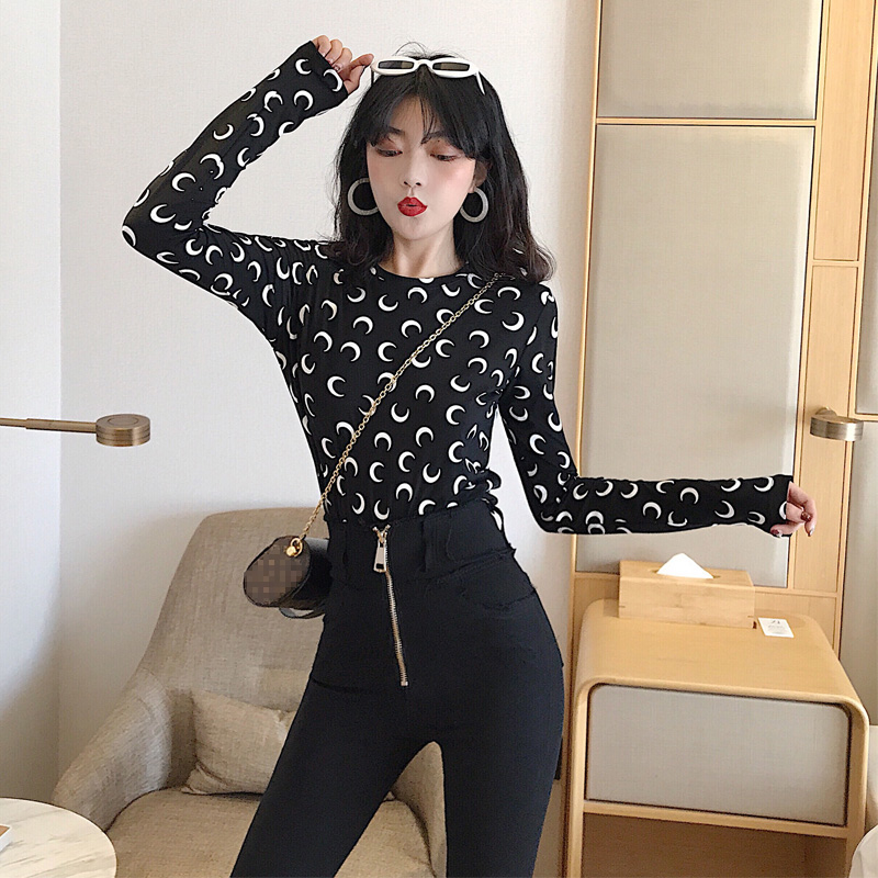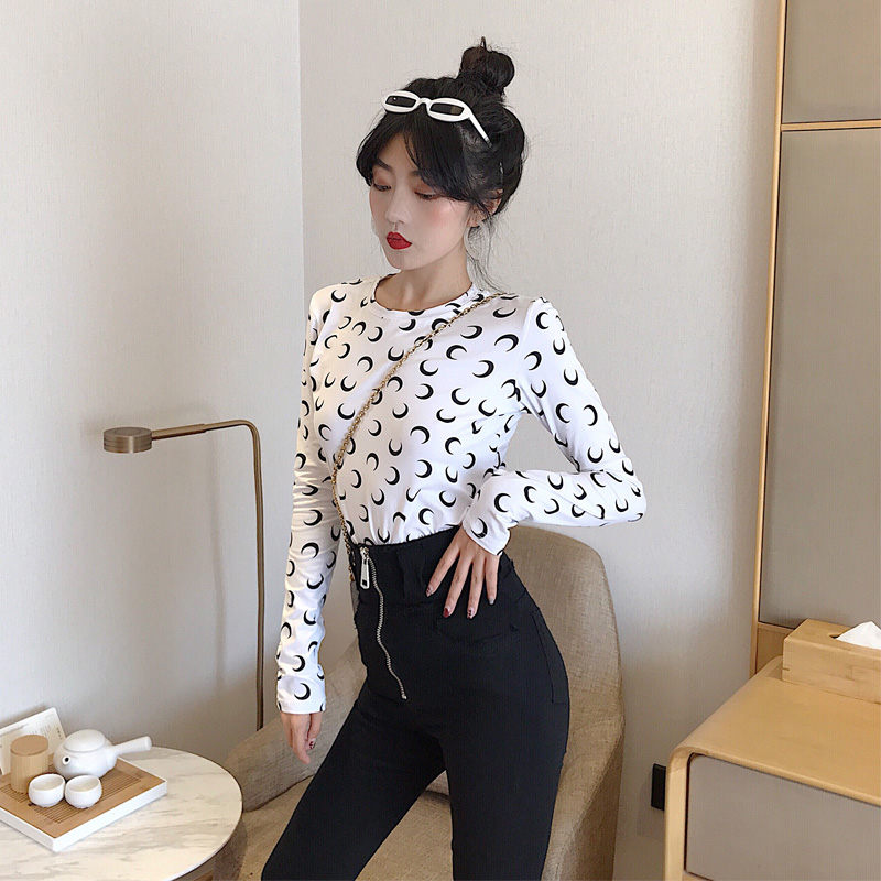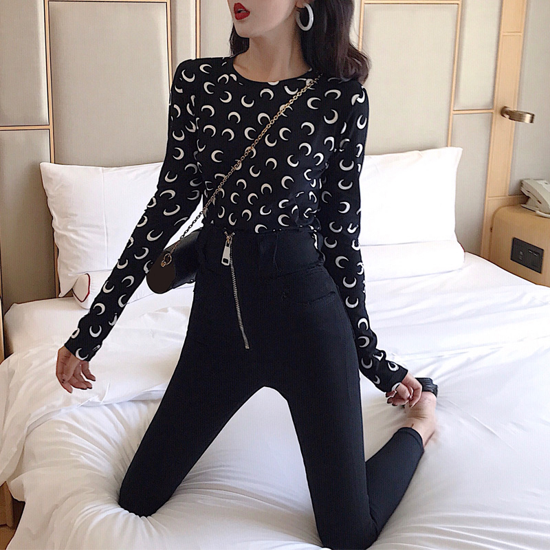 2018新款長袖T恤女修身打底衫高腰小腳褲外穿打底褲港風時尚套裝