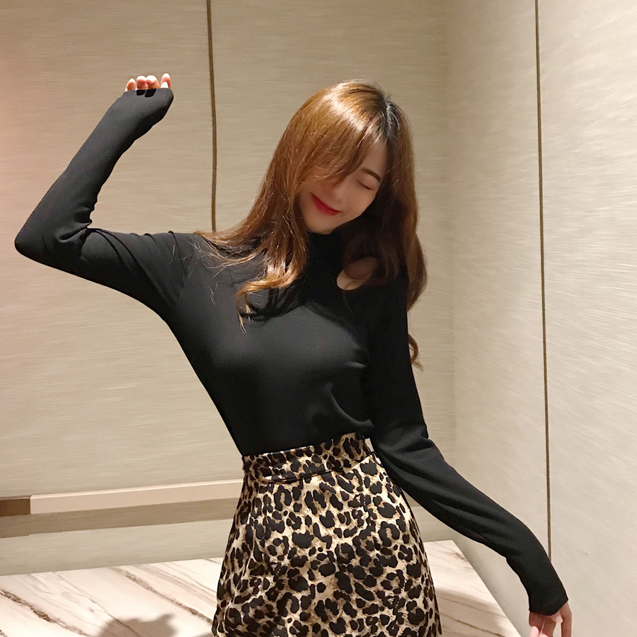 2018新款復古氣質時尚上衣女百搭修身長袖chic小高領打底衫T恤潮