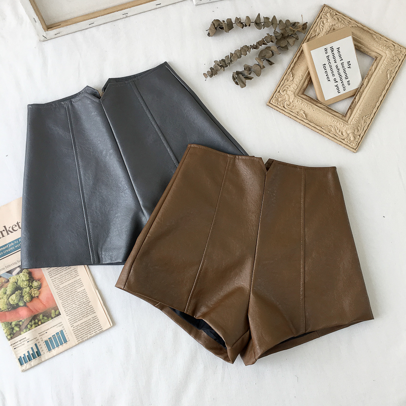 / 2018秋冬新款韓版chic時尚百搭洗水PU皮褲純色高腰外穿短褲女潮流