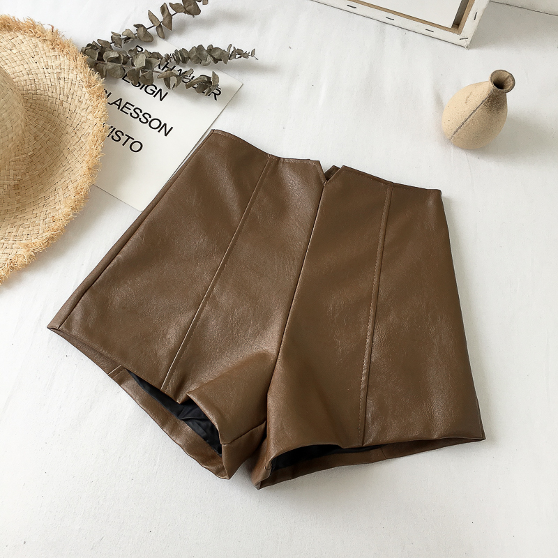 2018秋冬新款韓版chic時尚百搭洗水PU皮褲純色高腰外穿短褲女潮流