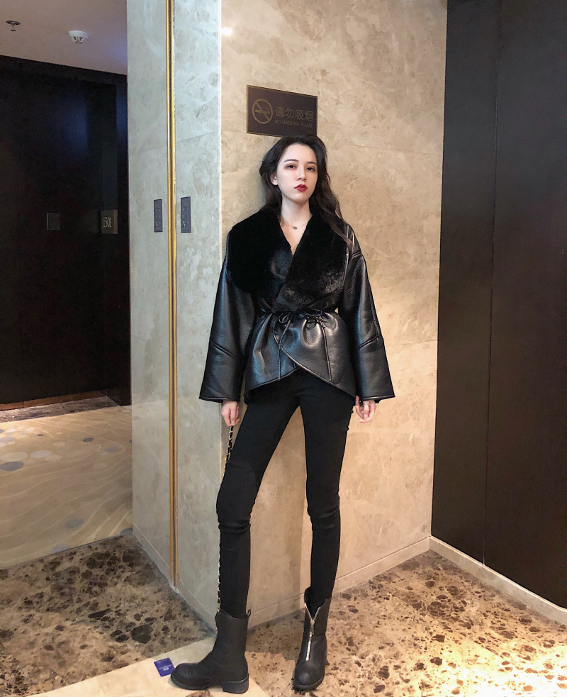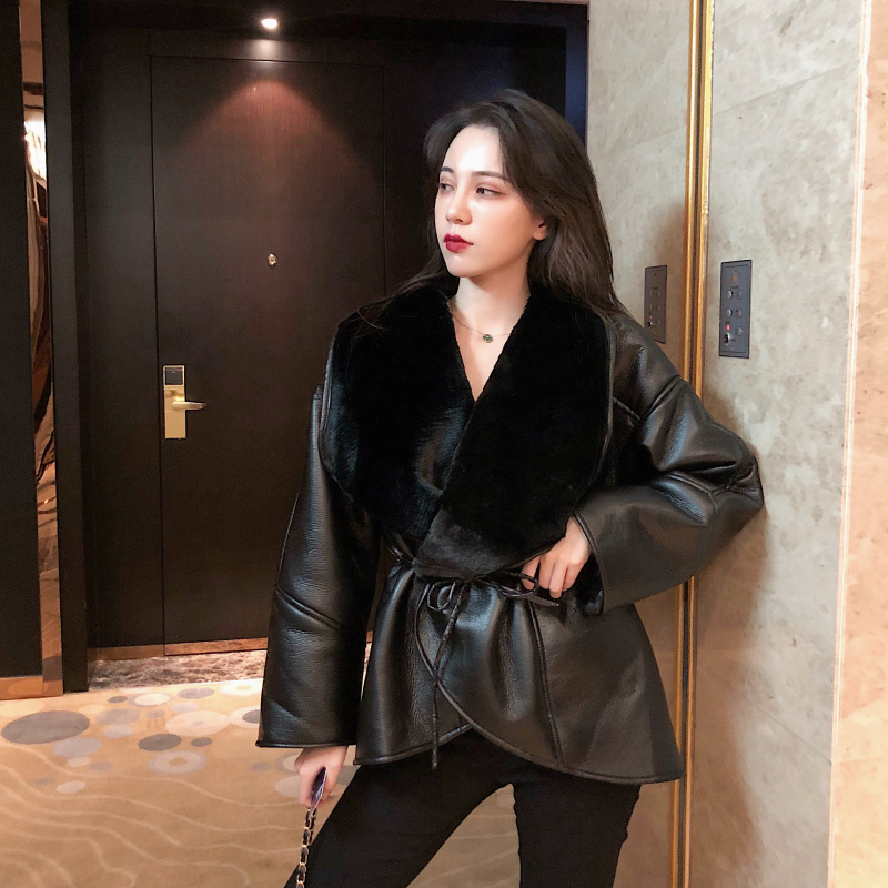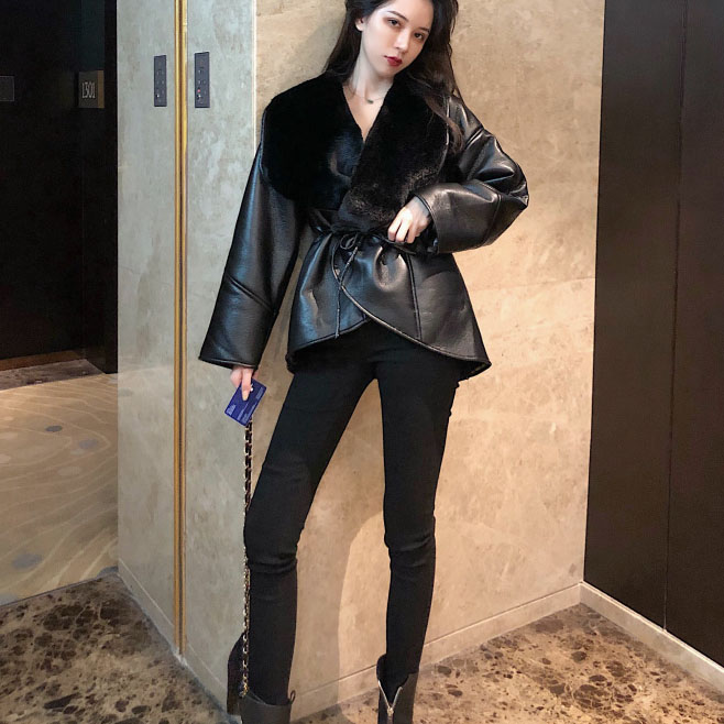 / 韓版chic皮毛一體皮草毛絨加厚保暖長袖皮外套女秋冬2018新款上衣