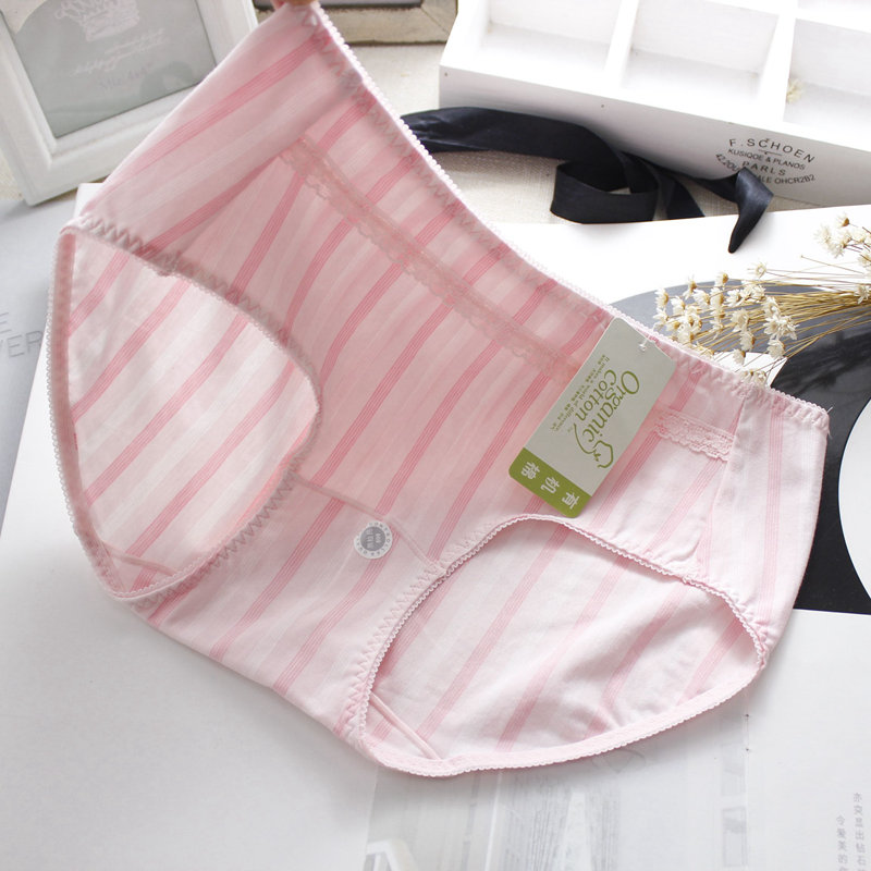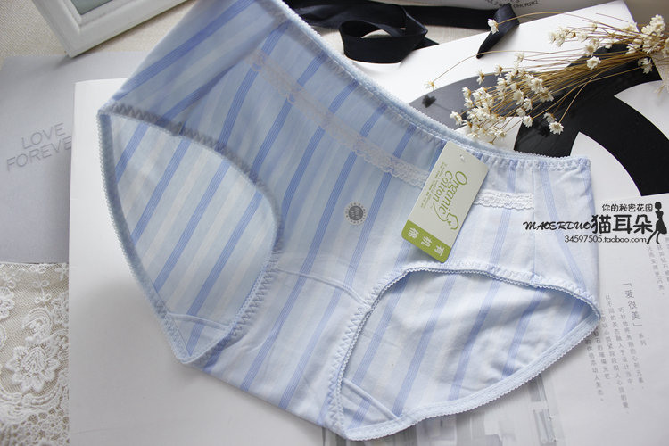 商品描述: 安靜學院風條紋 柔軟棉莫材質 文藝清新的條紋圖案 選用60支細有機棉 具有絲綢般的細膩觸感 給你溫柔的呵護,體驗原始的輕松感受 精致蕾絲鑲嵌腰部, 舒適透氣,基本百搭,可愛的印花看起來文藝小清新, 喜歡這份簡單安雅 中腰的款式 舒適包臀,