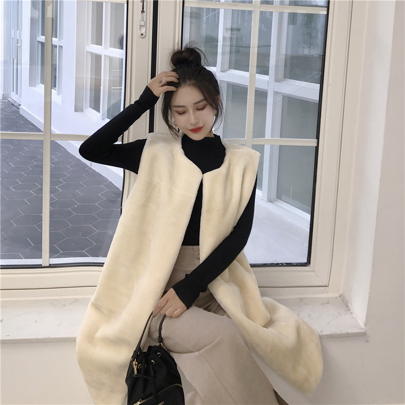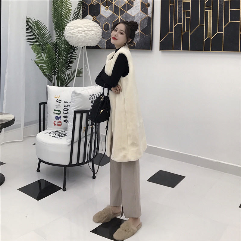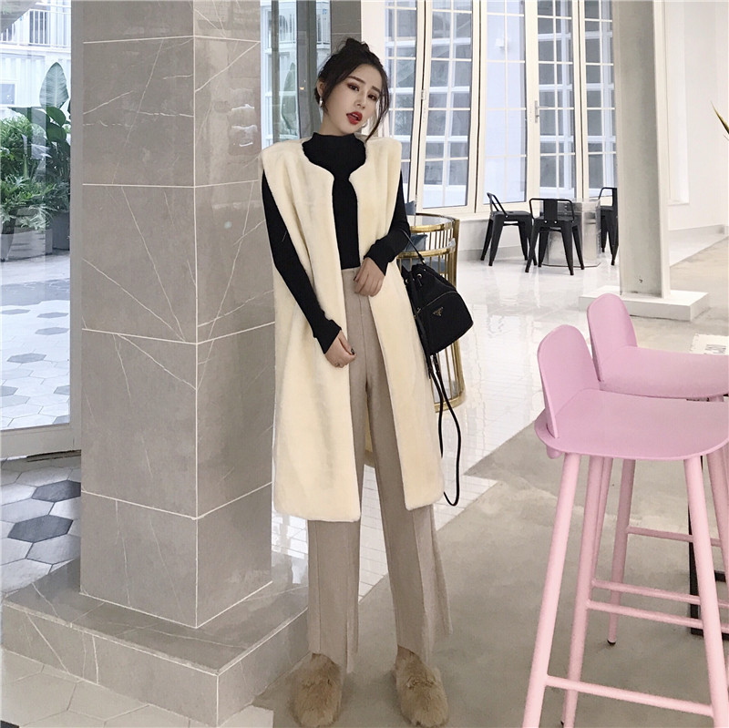 / 新款毛毛長款馬甲百搭打底針織衫上衣高腰闊腿長褲時尚套裝三件套