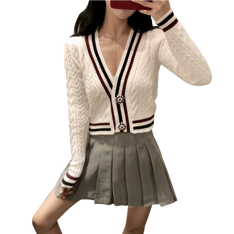 / 新款chic時尚套裝秋冬學院風減齡少女修身針織開衫短裙百搭兩件套