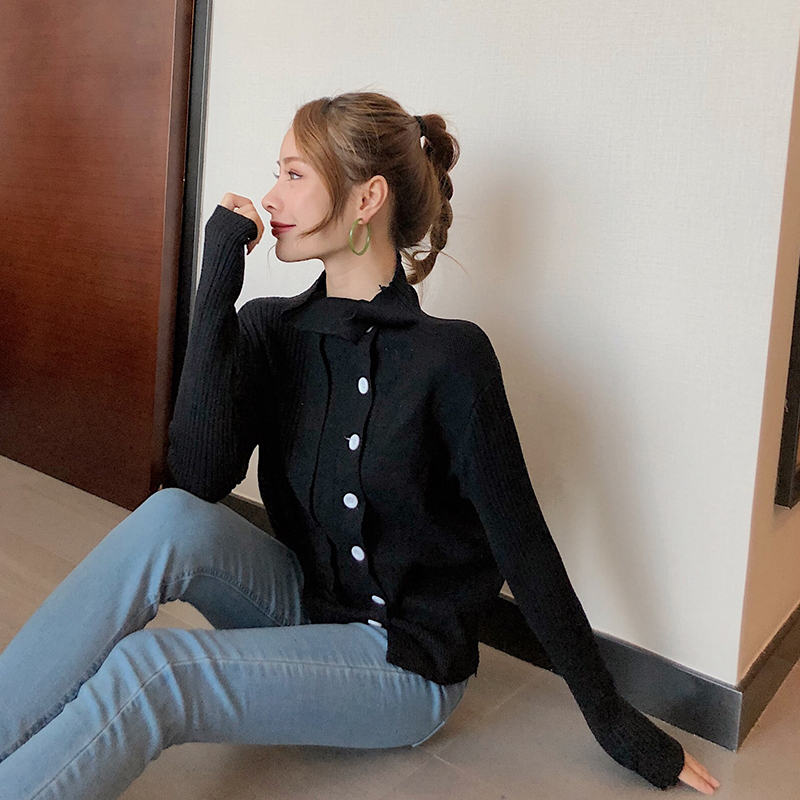 2018秋冬新款韓版長袖開衫純色單排扣寬松顯瘦針織百搭chic外套女