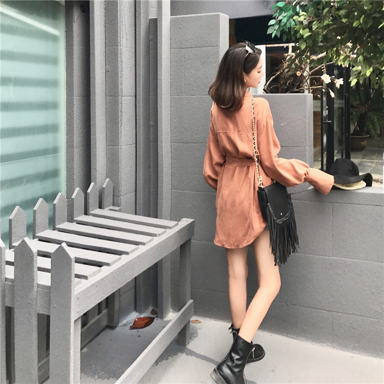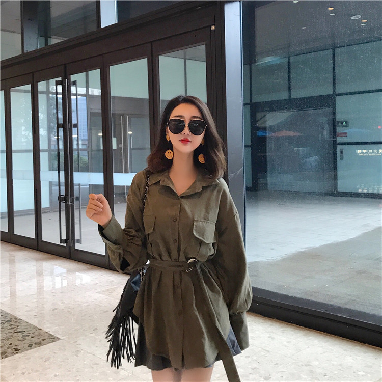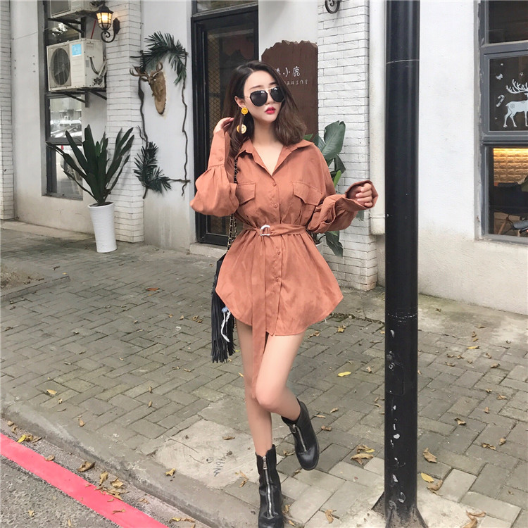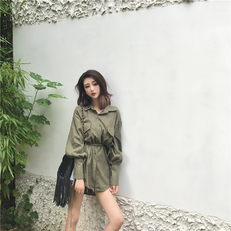 / 復古港味秋裝新款百搭chic中長款小香風女韓版氣質時髦襯衣配腰帶