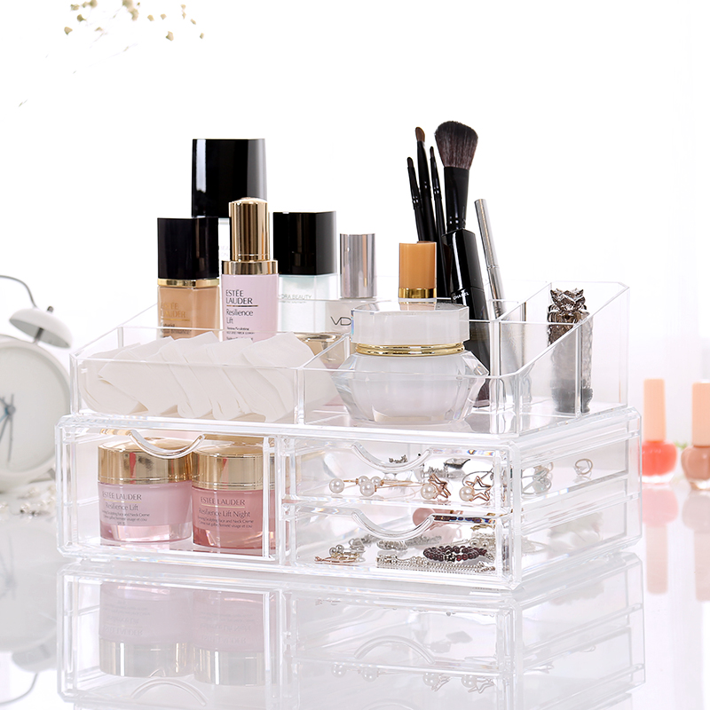 韓式特大號透明塑料抽屜式化妝品首飾彩妝收納盒桌面組合化妝盒