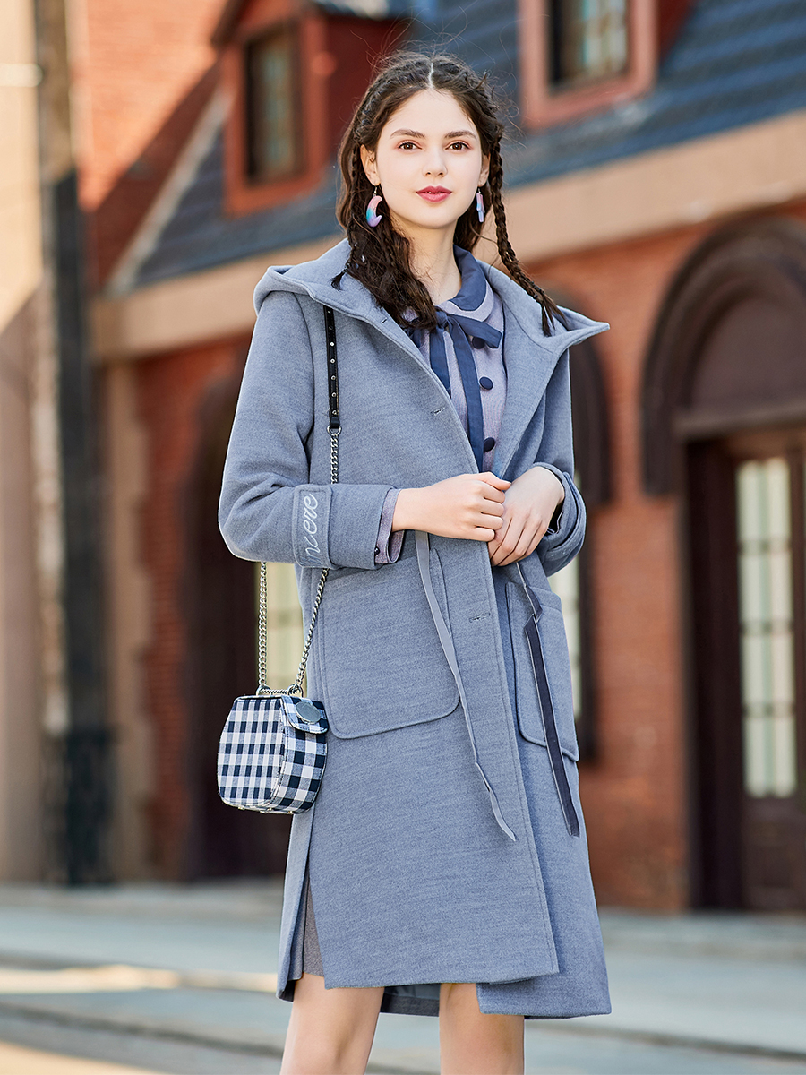 MG小象冬季連帽呢子外套女中長款過膝2018新款學生寬松毛呢大衣潮
