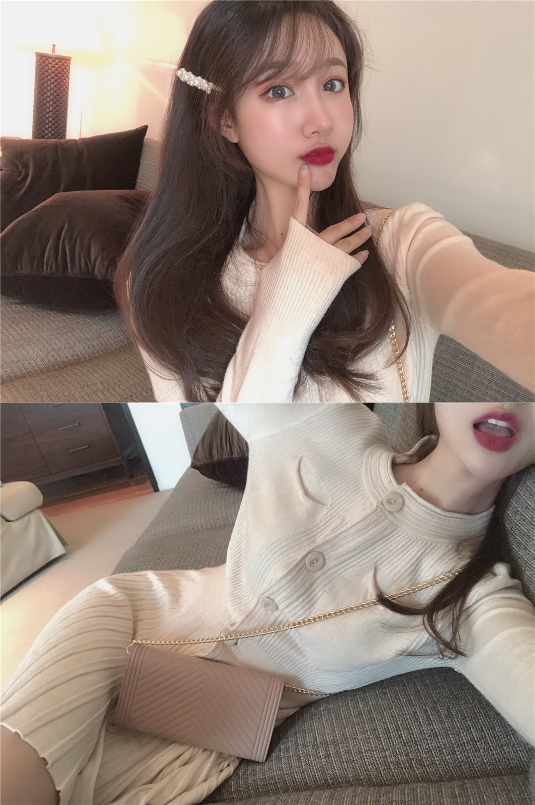 晚晚風秋季新款顯瘦長袖百搭修身短裙百褶裙針織拼接紐扣連衣裙女