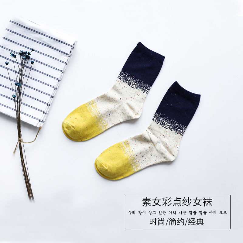 韓國個性素女棉襪彩點紗中筒純棉女襪創意吸汗透氣短襪