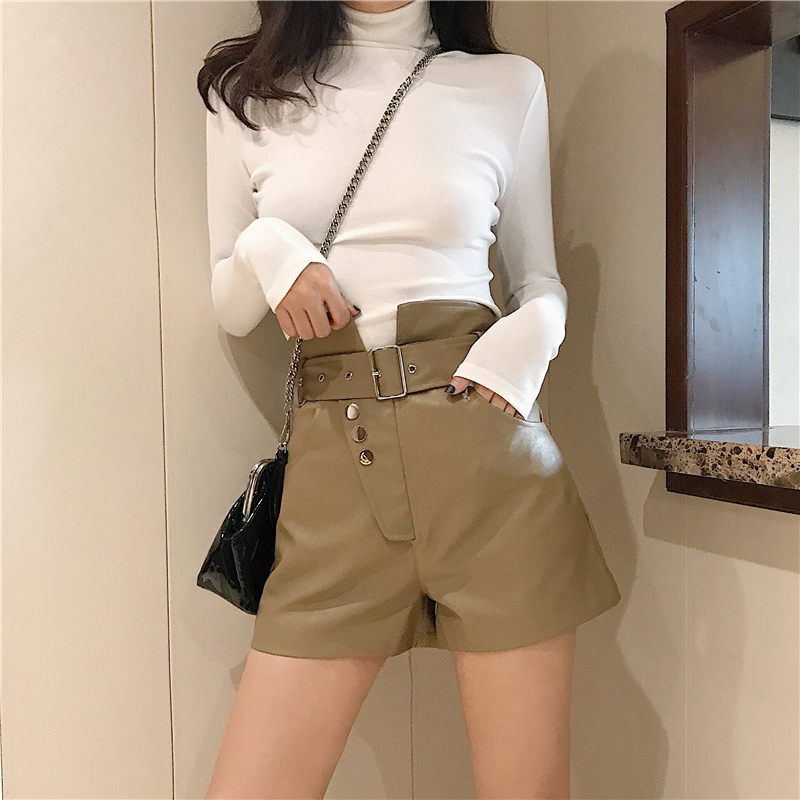 / 褲子2018新款秋冬百搭chic氣質時尚顯瘦設計感高腰皮短褲女配腰帶