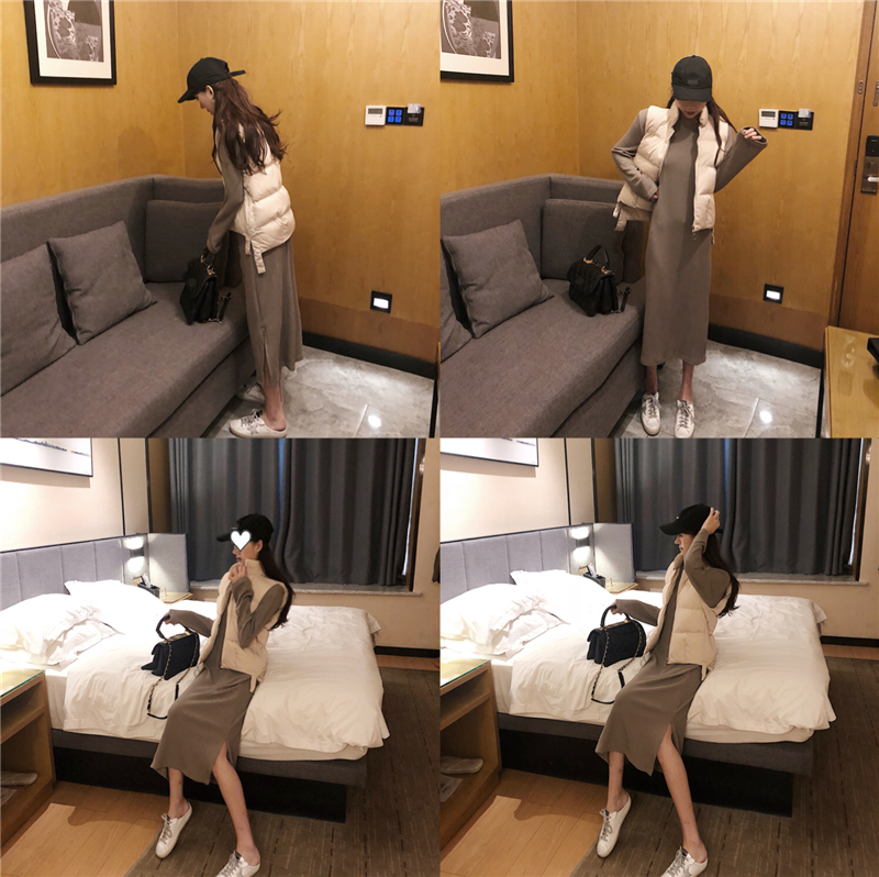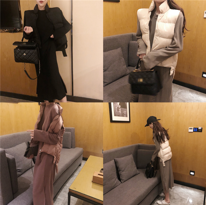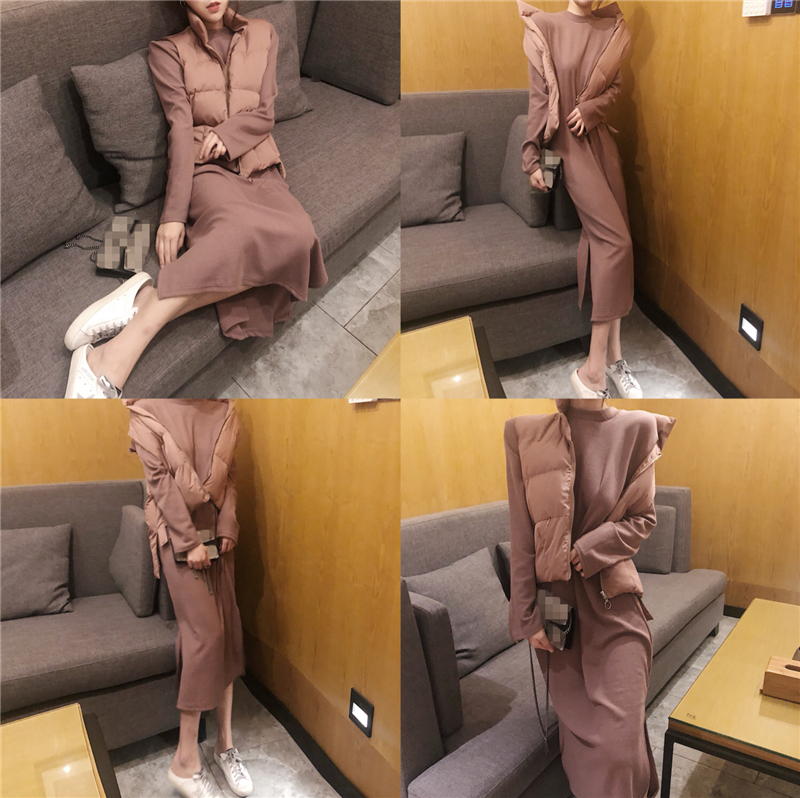 / 秋季新款韓版chic短款棉服馬夾外套純色長袖連衣裙打底裙時尚套裝