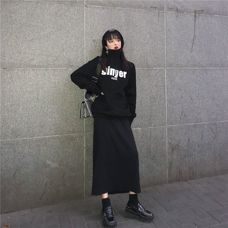 / 加厚毛線高領假兩件字母衛衣