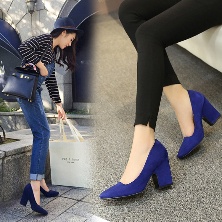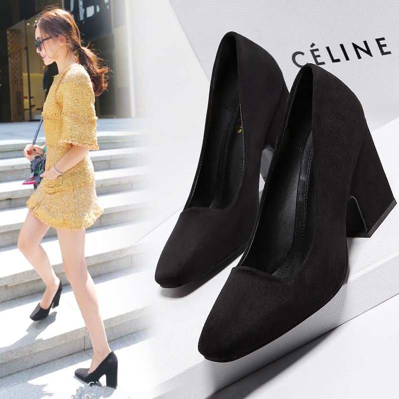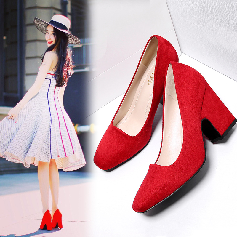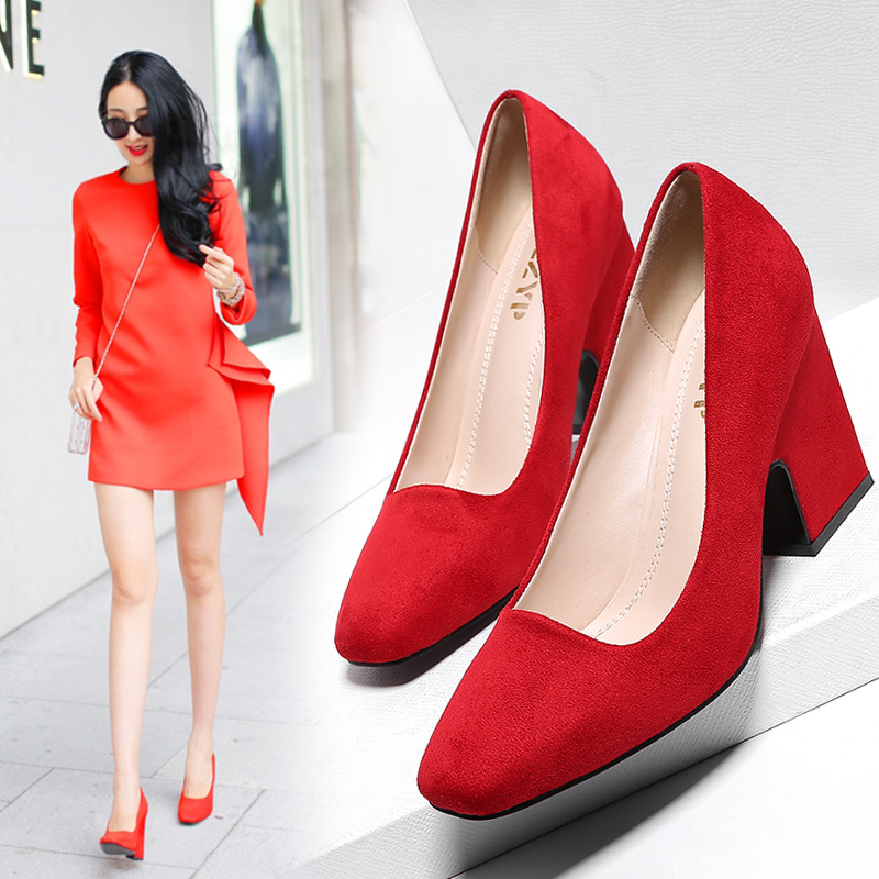 / 高跟鞋女單鞋紅色婚鞋秋歐美范方頭黑色淺口職業粗跟工作女鞋
