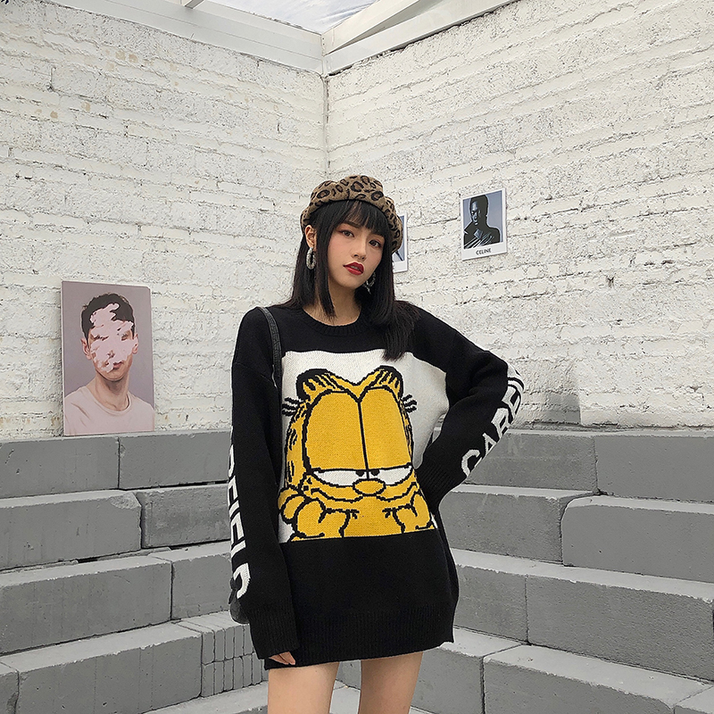 / 復古韓國chic風時尚卡通圖案字母寬松長袖套頭網紅毛衣女2018新款