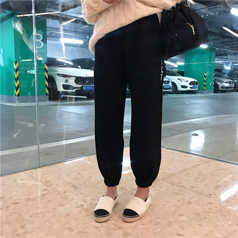 復古麻花懶惰風寬松毛衣休閑高腰毛呢束腳哈倫蘿卜褲新款時尚套裝