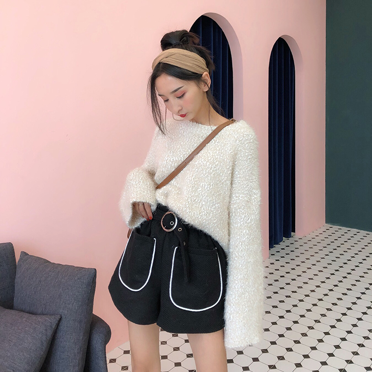 / chic風韓版褲子女秋冬2018新款百搭高腰粗毛呢撞色寬松闊腿短褲潮