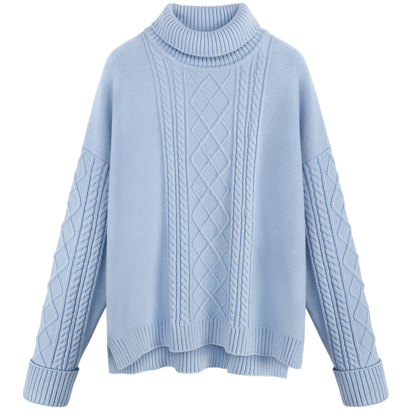 MG小象純色小清新毛衣女寬松學生針織衫秋冬2018新款高領套頭上衣