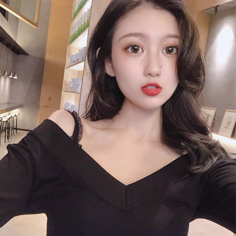 露背V領2018秋季新款長袖修身純色顯瘦復古打底chic百搭T恤上衣女