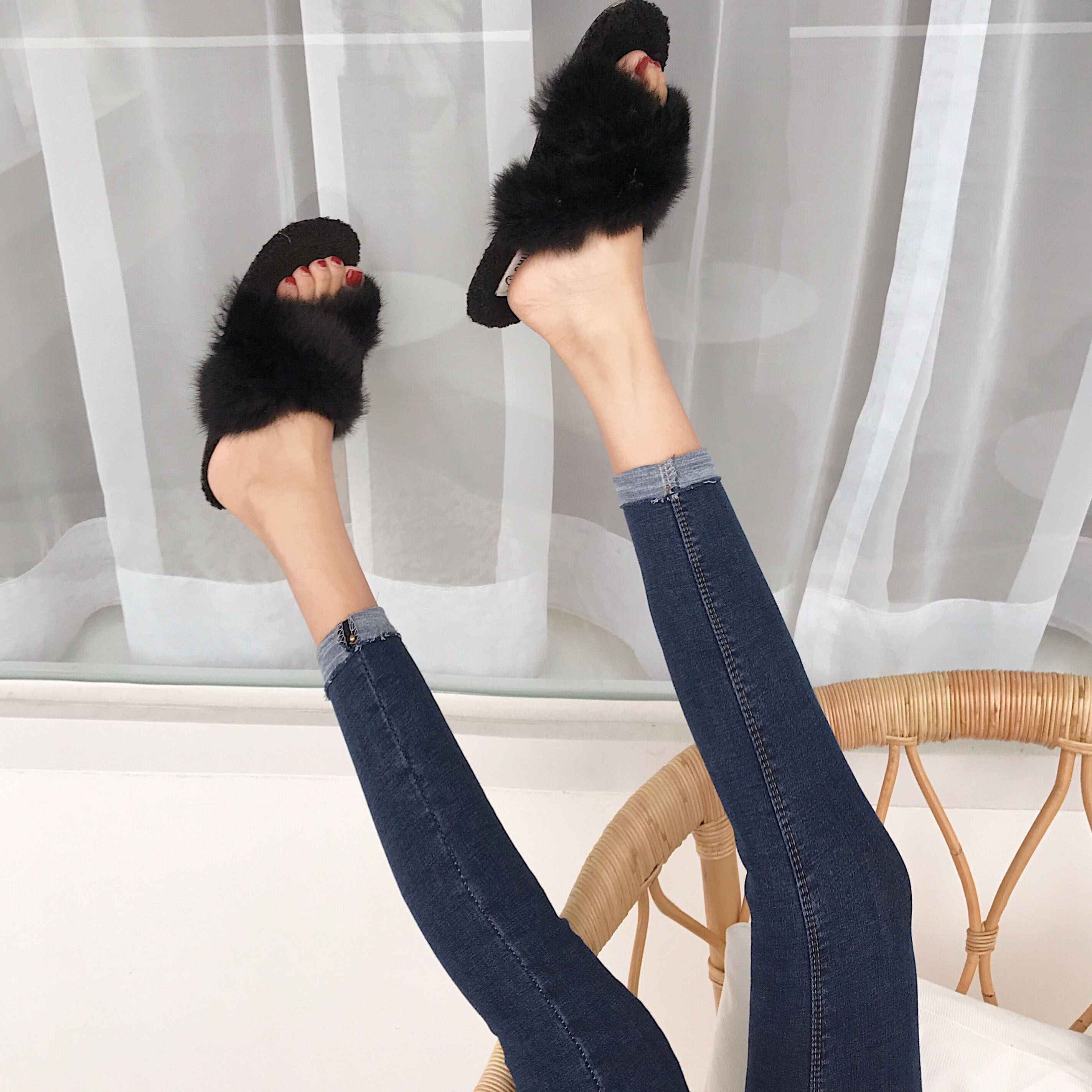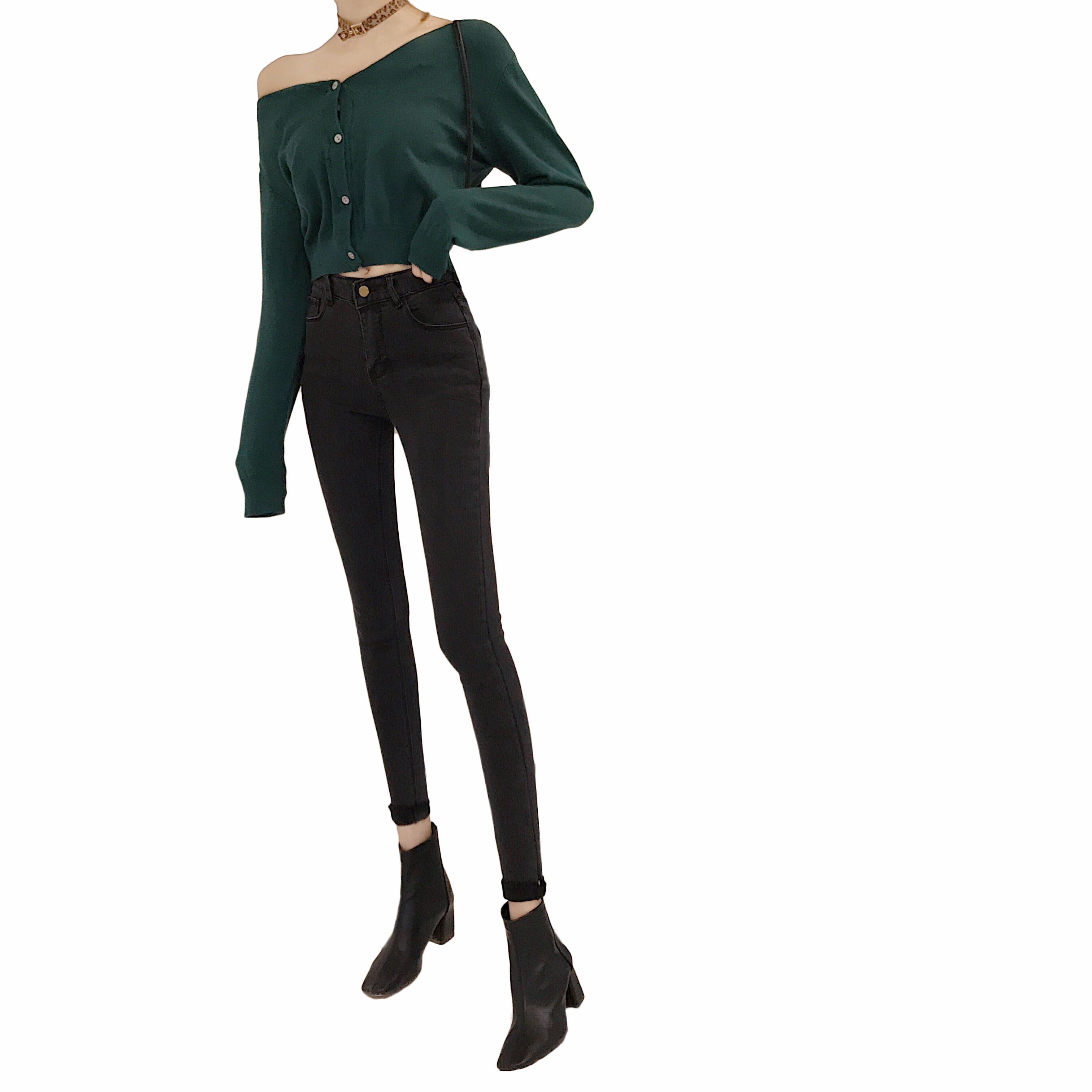 / 韓國chic風時尚釘珠顯瘦小腳鉛筆褲修身彈力加薄絨九分牛仔褲女潮
