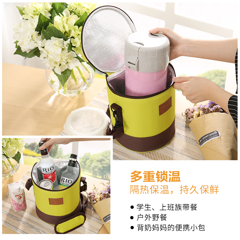 天縱保溫桶袋大號保溫袋鋁箔加厚便當包飯盒袋圓形牛津布蛋糕手提