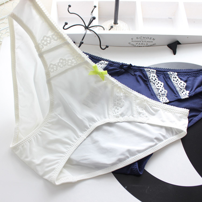 簡單的蕾絲拼接 絲滑牛奶絲小內