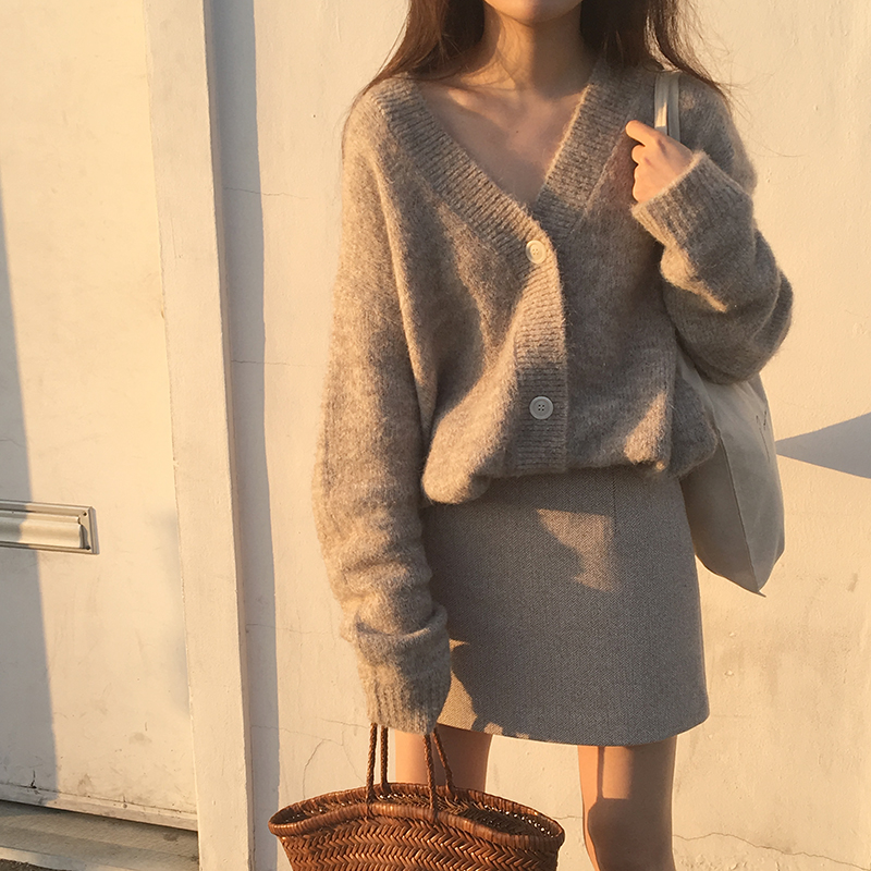/ 秋裝韓版女裝顯瘦chic寬松毛衣開衫慵懶風百搭氣質中長款針織衫潮