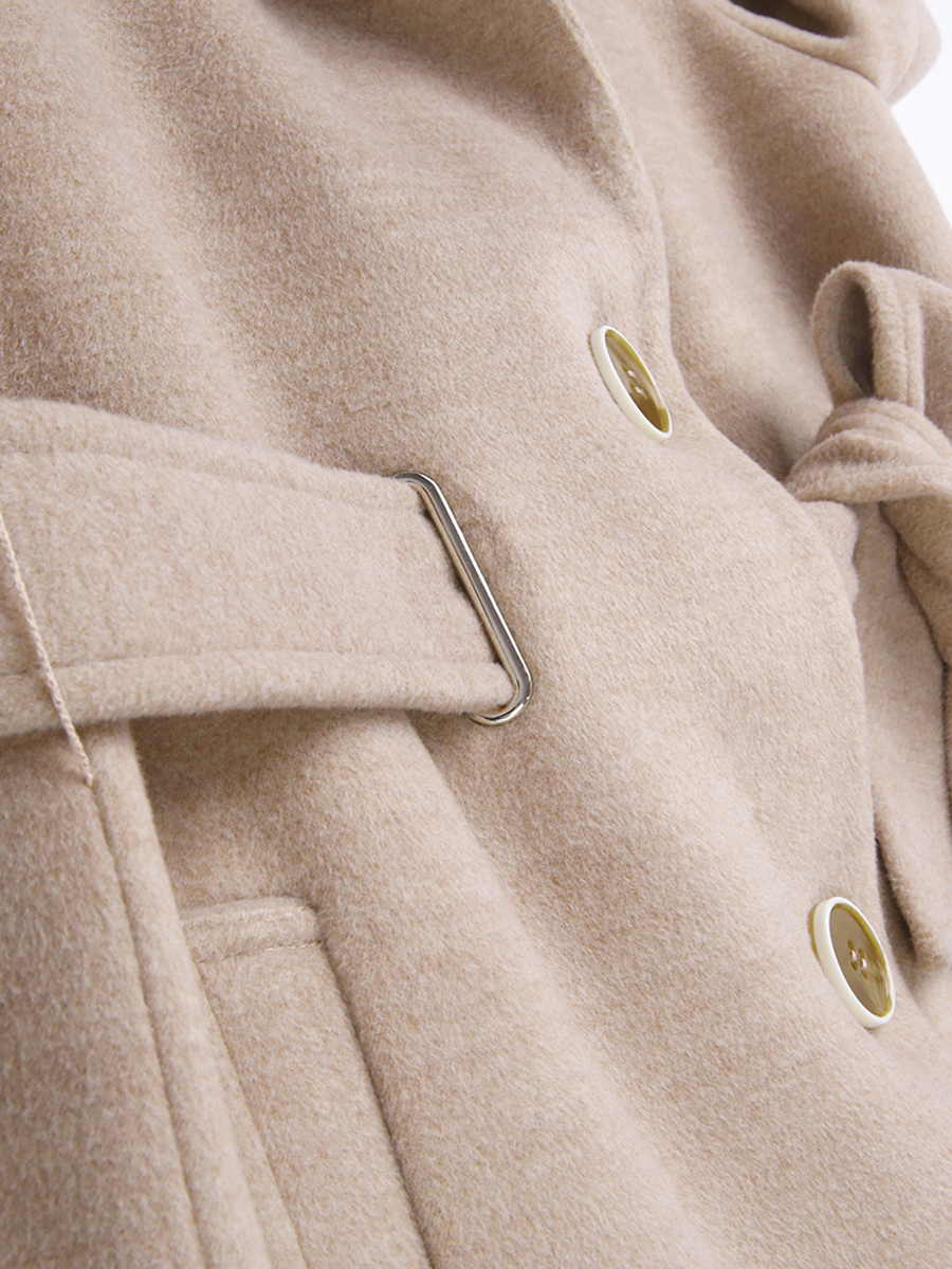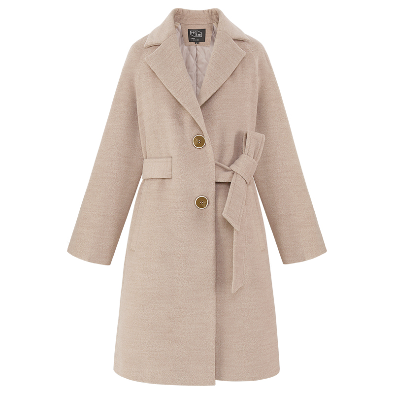 MG小象收腰毛呢外套女中長款冬季2018新款寬松蝴蝶結流行呢子大衣