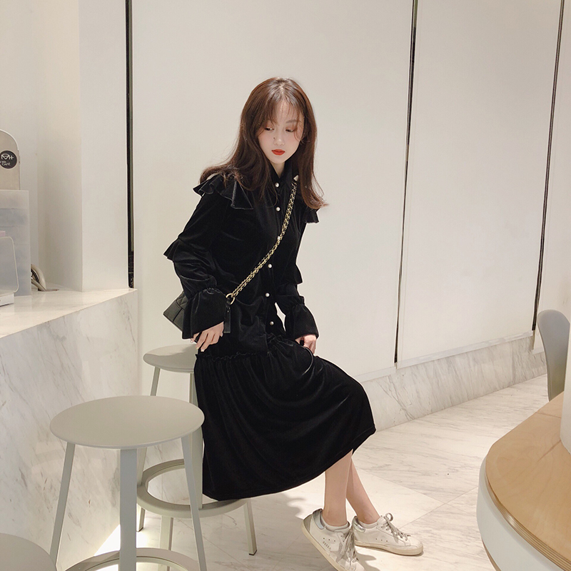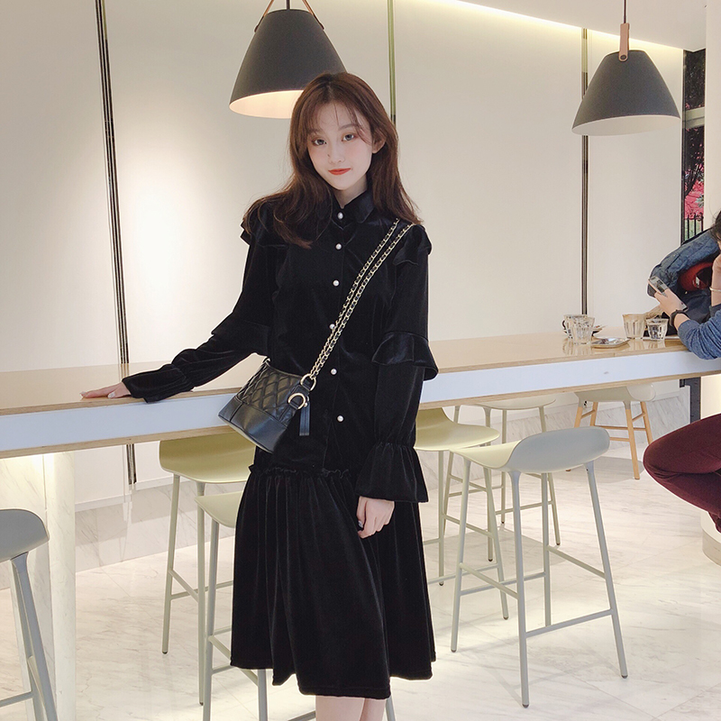 秋冬2018新款套裝時尚法蘭絨荷葉邊百搭睡裙休閑甜美家居服連衣裙