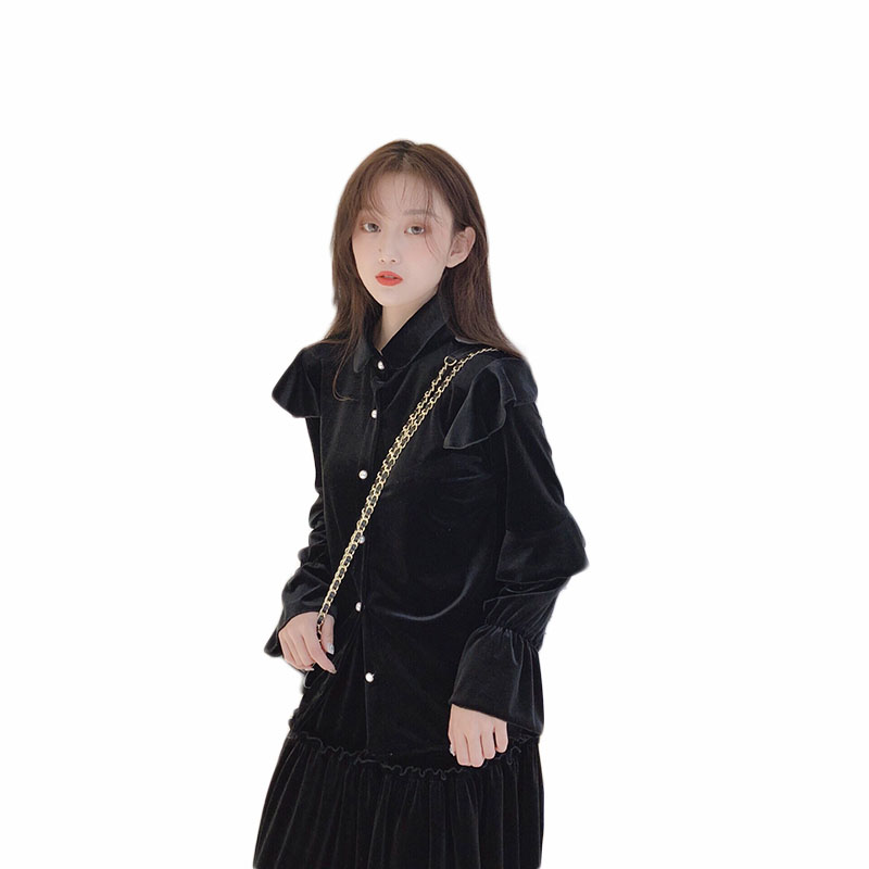 / 韓版絲絨褶皺拼接松緊腰半身裙+加厚呢子百搭短款毛呢外套女套裝