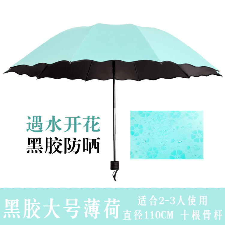 晴雨傘小巧便攜雨水開花折疊傘黑膠防曬防紫外線超大加厚兩用太陽
