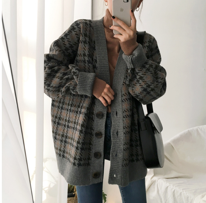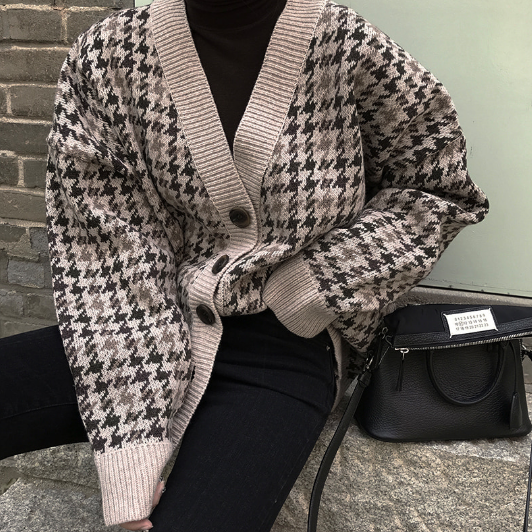 2018秋裝時尚chic復古韓國千鳥格針織開衫氣質小香風時尚百搭外套