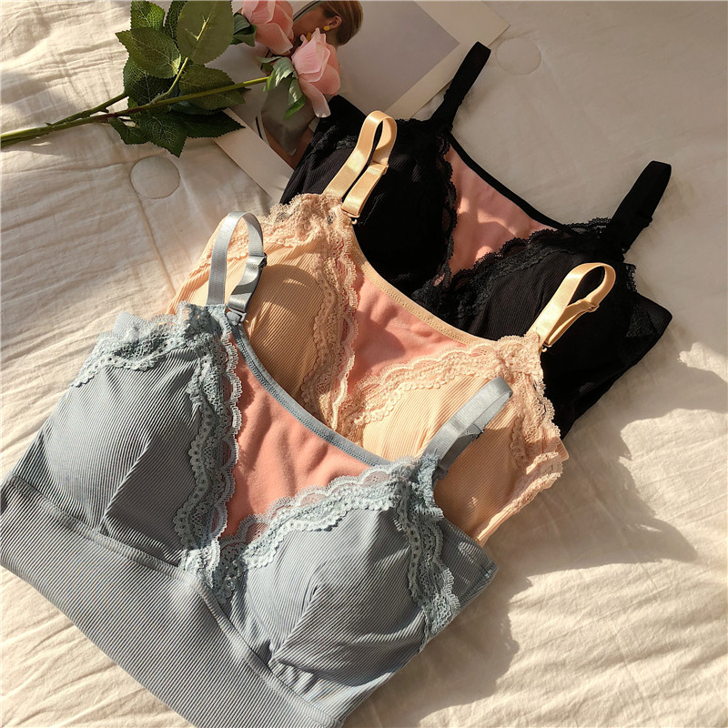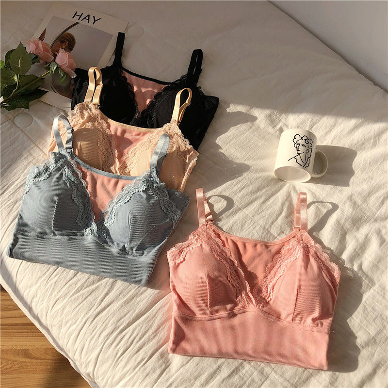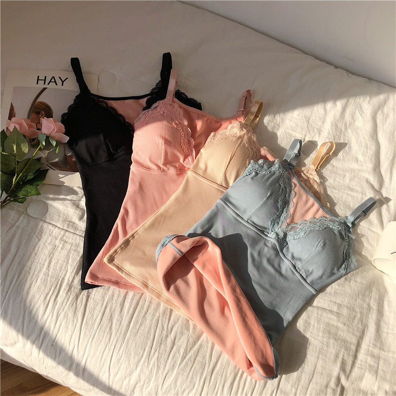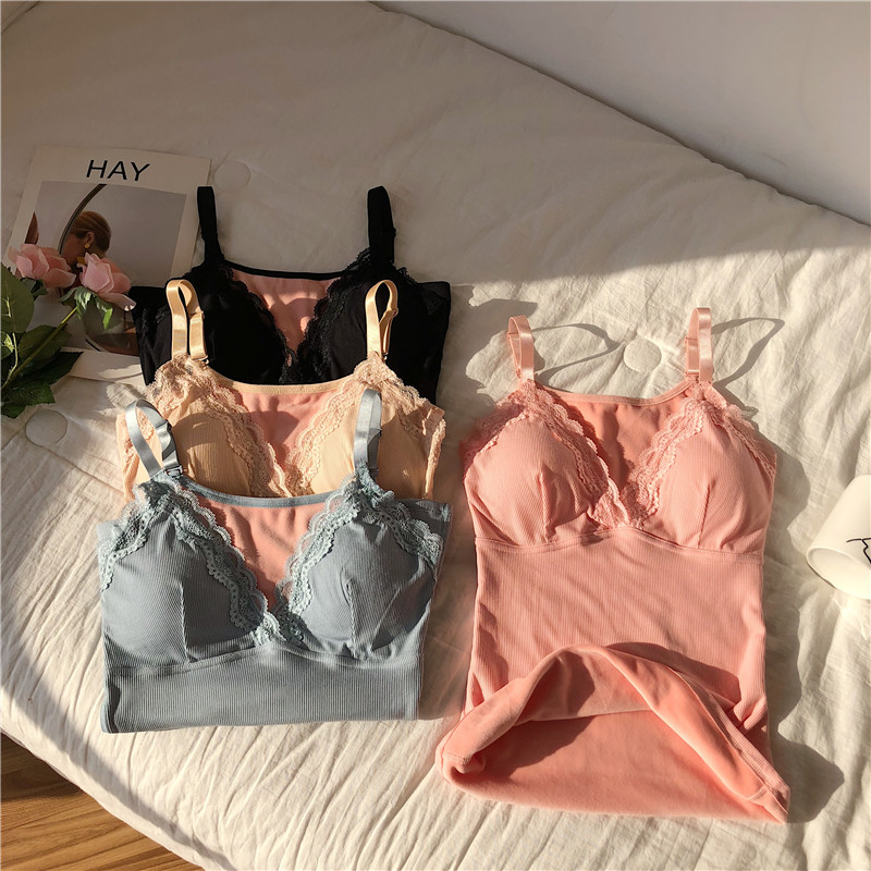 / 2018新款chic冬季蕾絲花邊性感V領細絨舒適保暖純色吊帶背心女裝