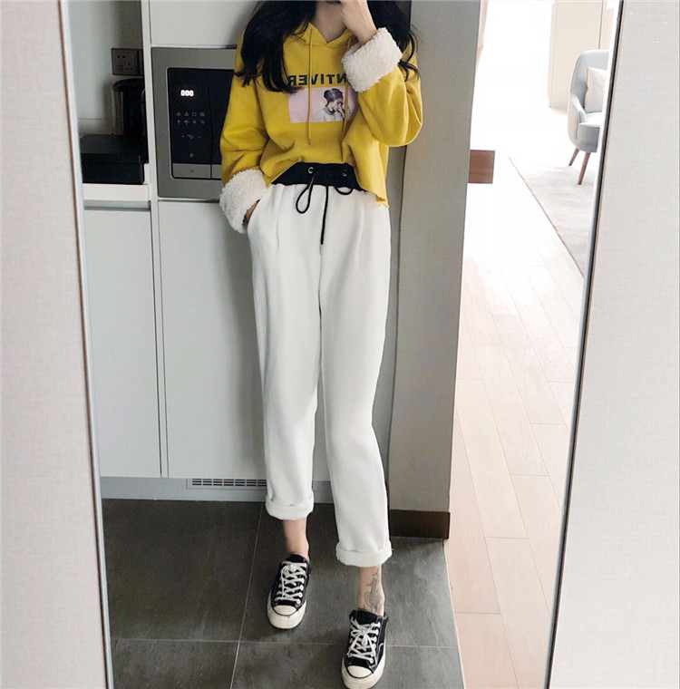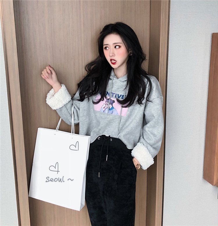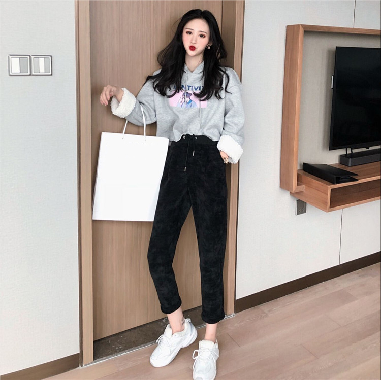 / 女神套裝秋冬新款袖口毛毛字母加絨連帽衛衣女+加絨休閑褲兩件套