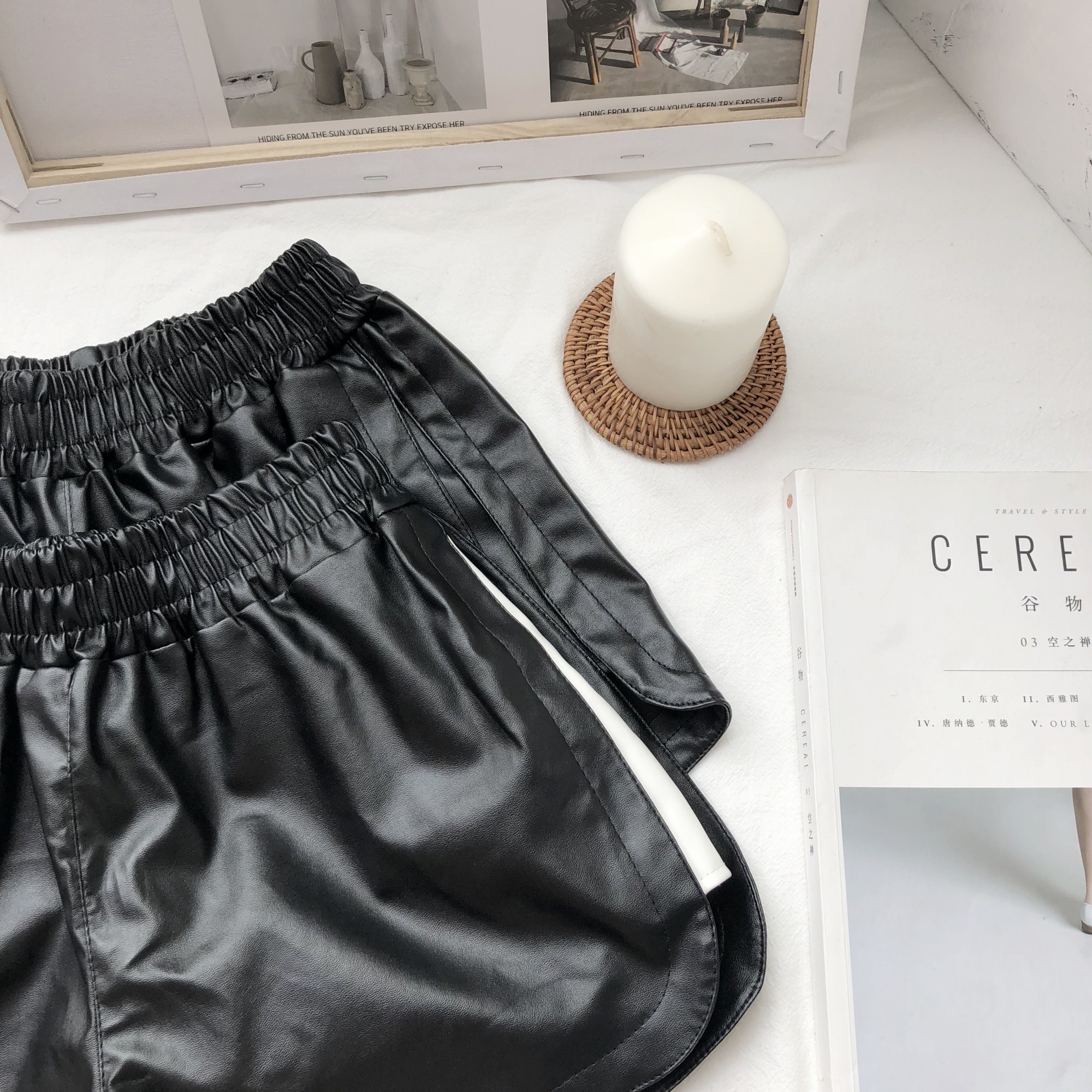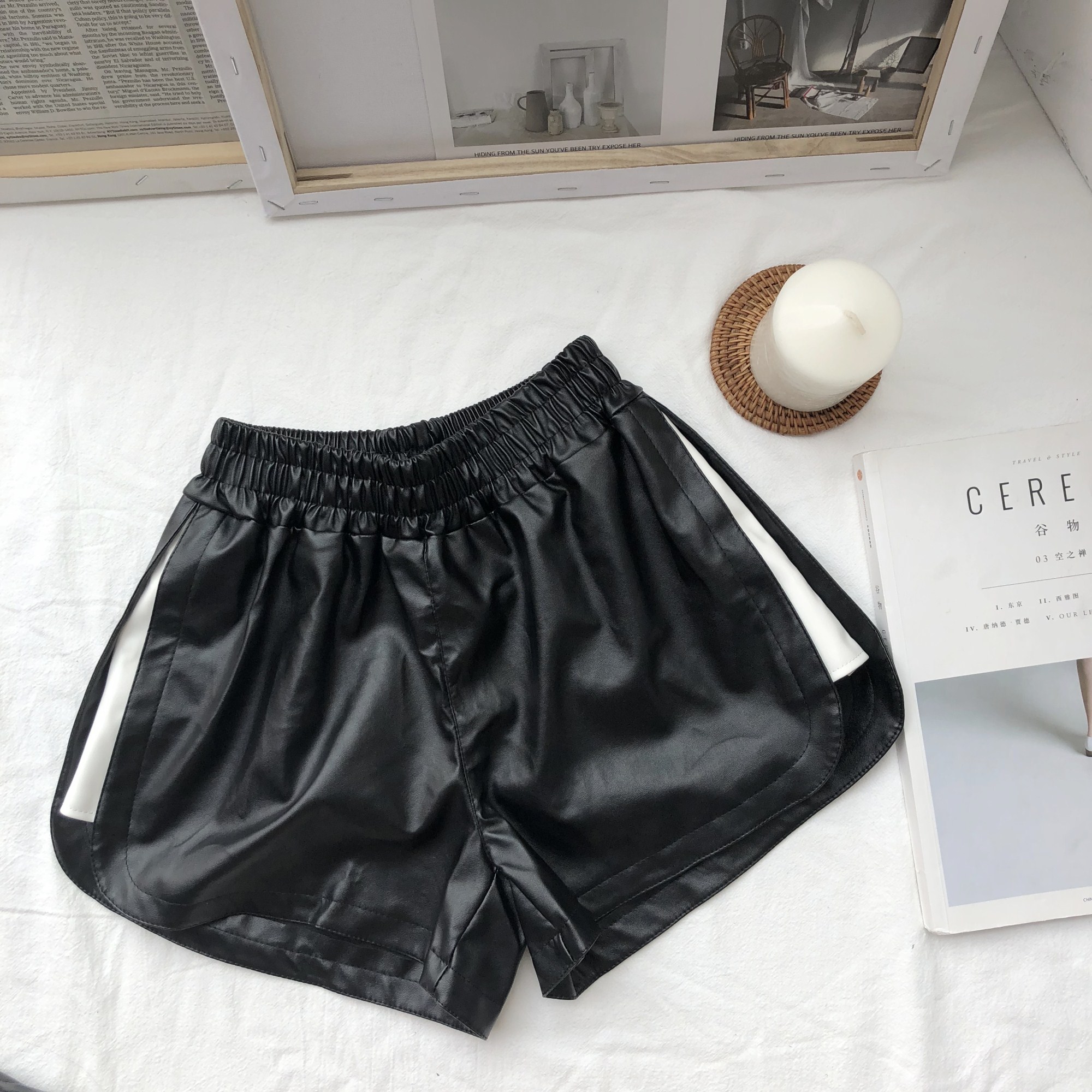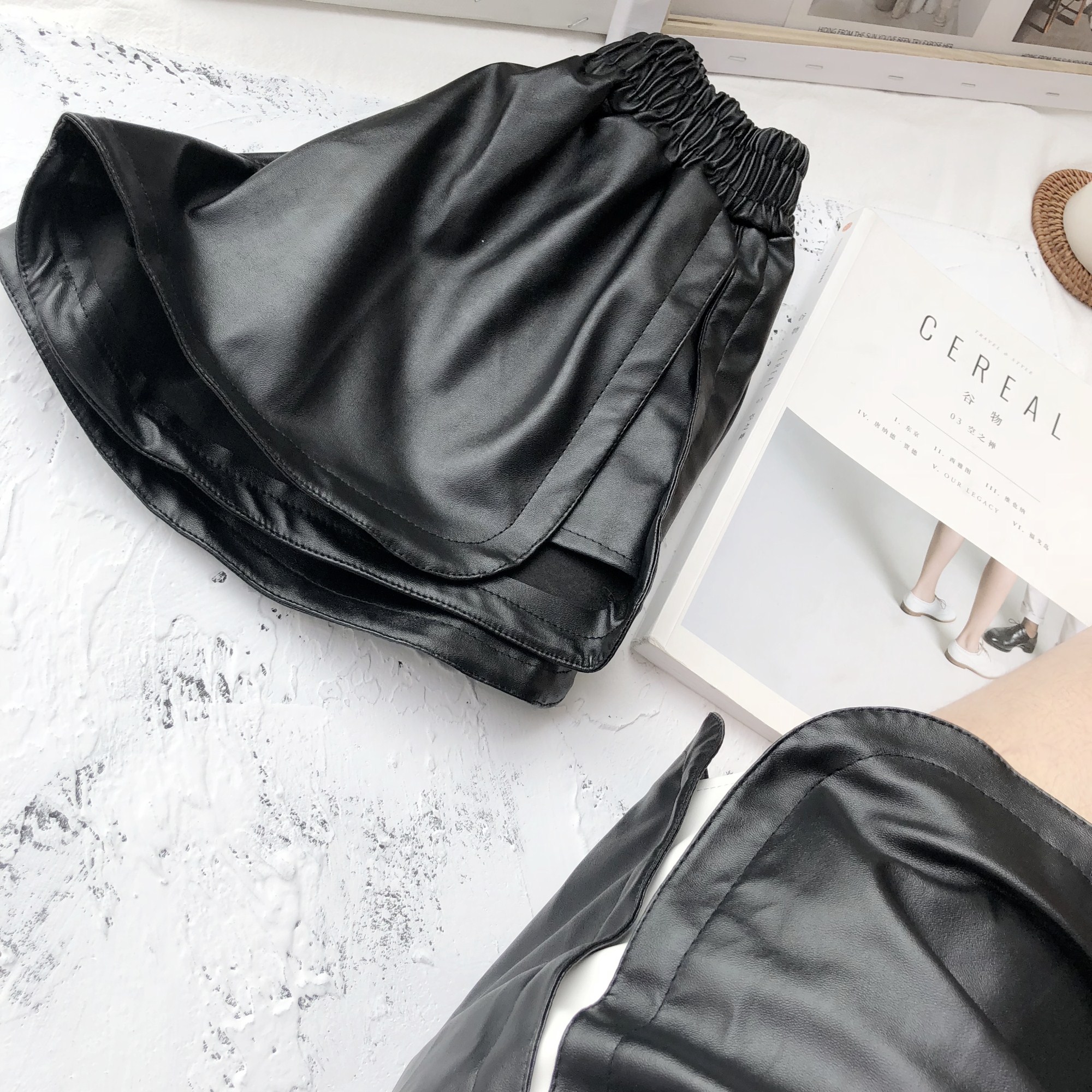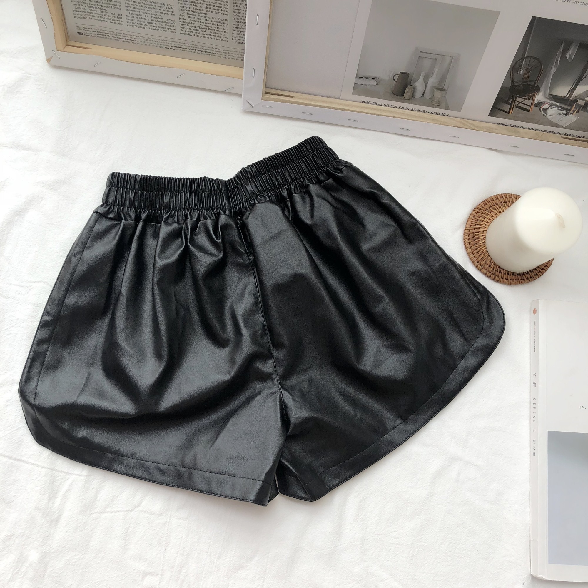 / 褲子新款韓版松緊腰外穿高腰寬松闊腿顯瘦百搭打底a字PU皮短褲女