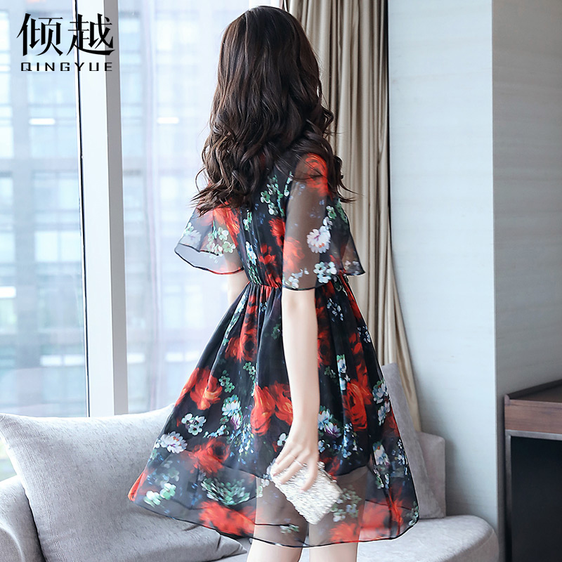 / 雪紡連衣裙女中長款修身顯瘦2017夏季新款印花氣質淑女碎花a字裙