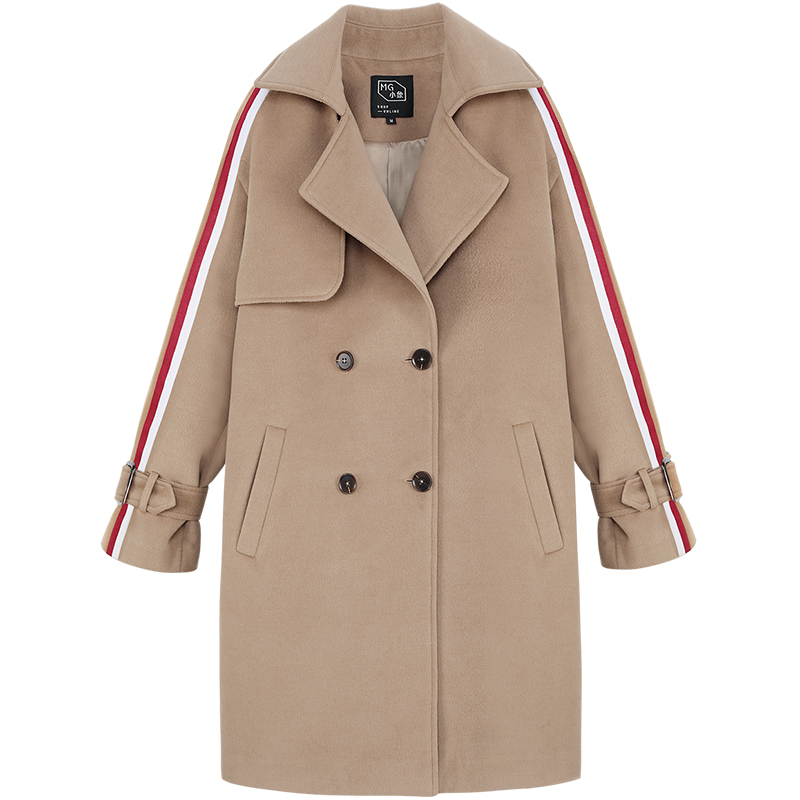 MG小象雙排扣毛呢外套女秋中長款韓版冬裝新款寬松學生卡其色大衣