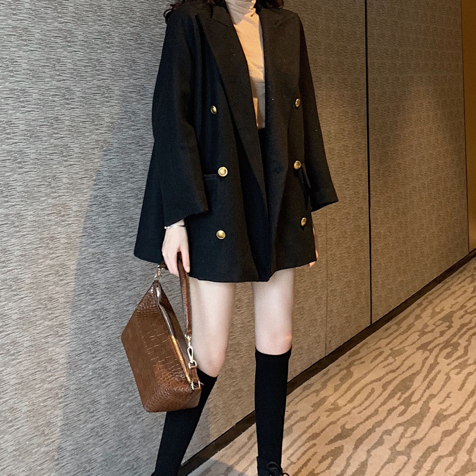 復古溫柔慵懶風隨意暖色系百搭寬松中長款毛呢外套女韓版呢子大衣