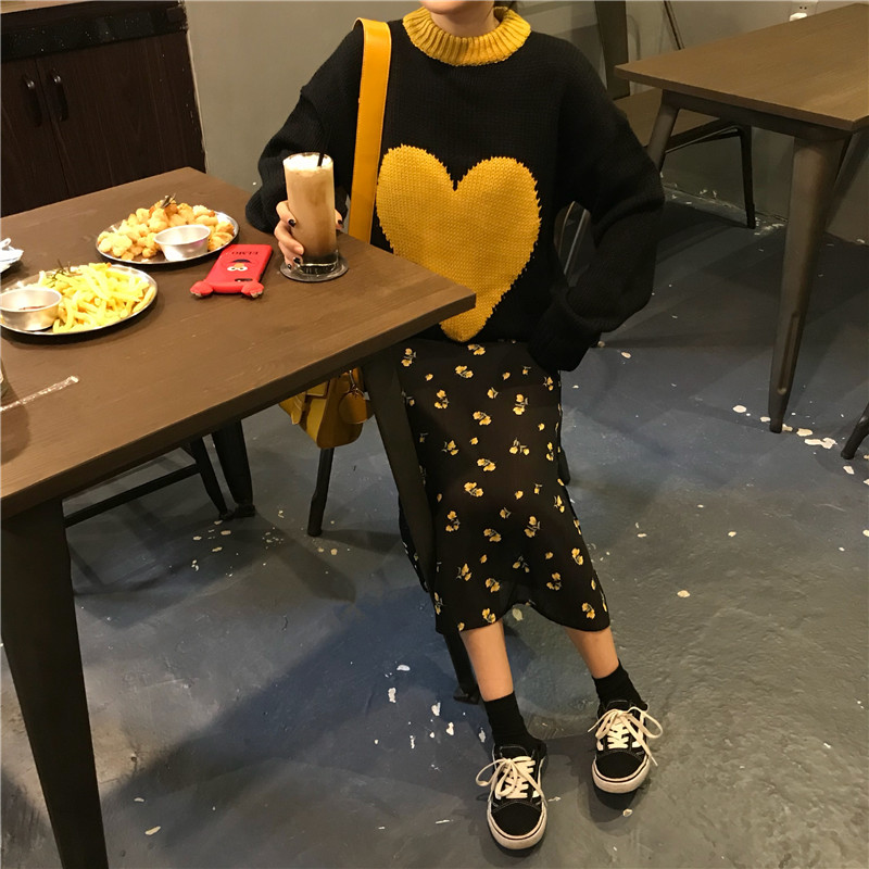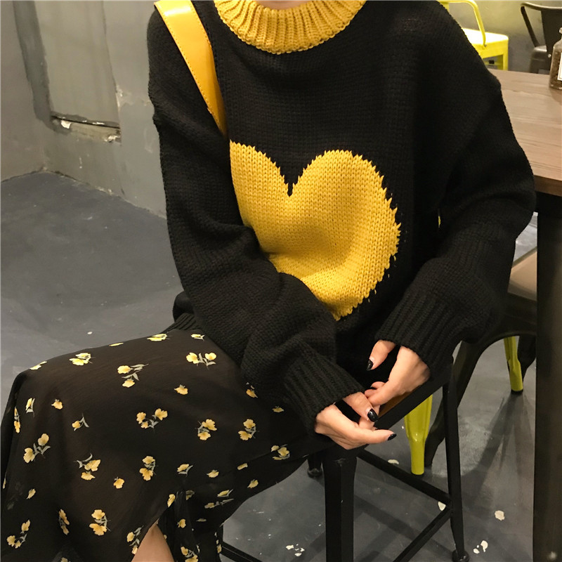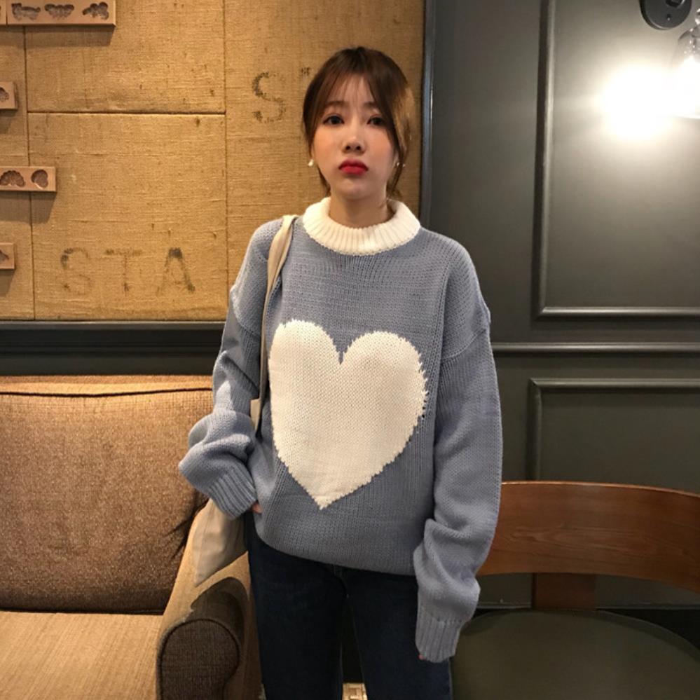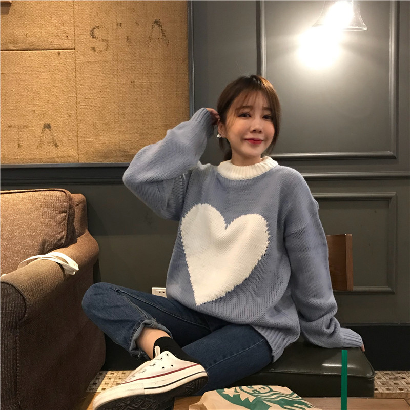 / 韓版小清新時尚新款秋冬加厚保暖上衣女裝百搭chic撞色愛心毛衣潮