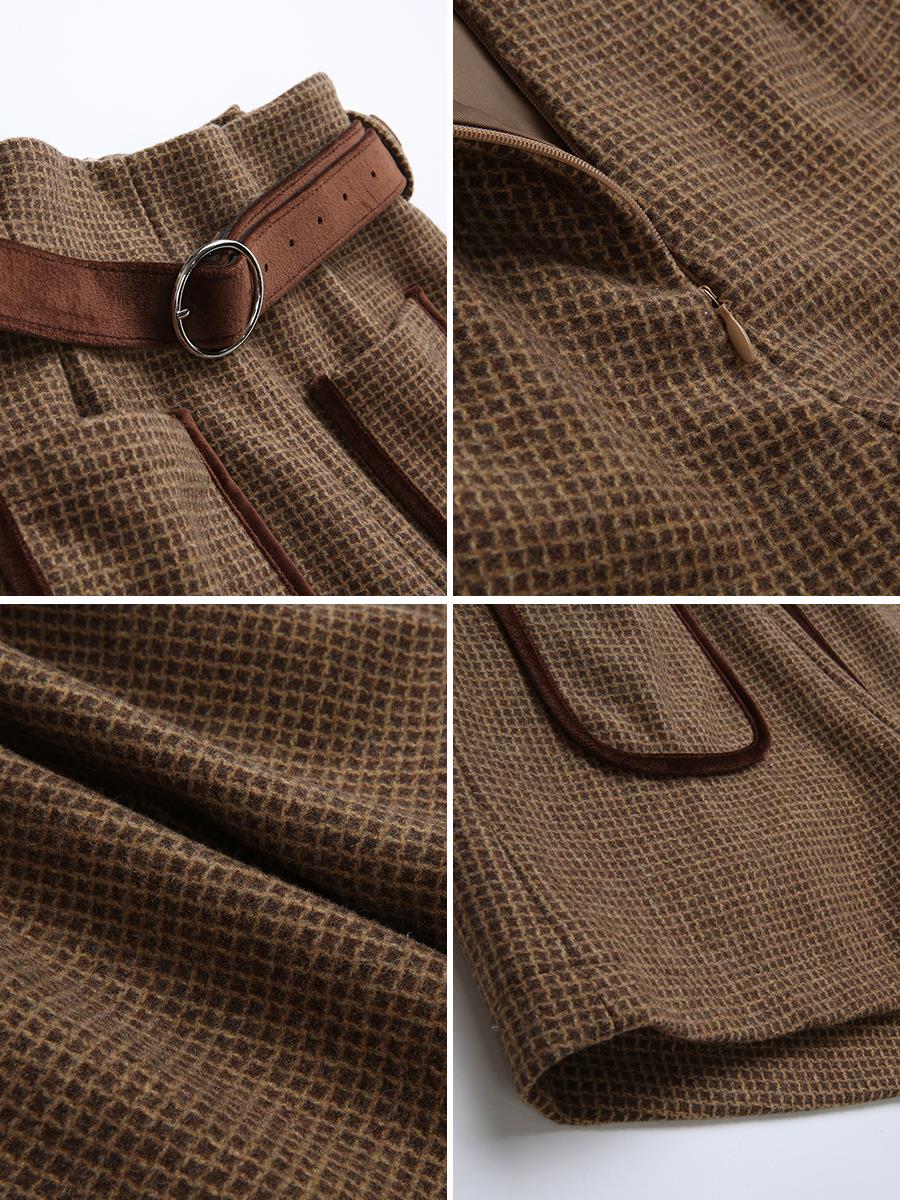MG小象高腰休閑短褲女秋冬新款格子直筒褲學生港風復古chic褲子潮