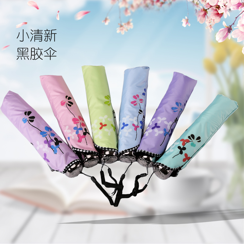 雨傘女韓國小清新折疊黑膠遮陽晴雨兩用防紫外線加固防曬三折傘