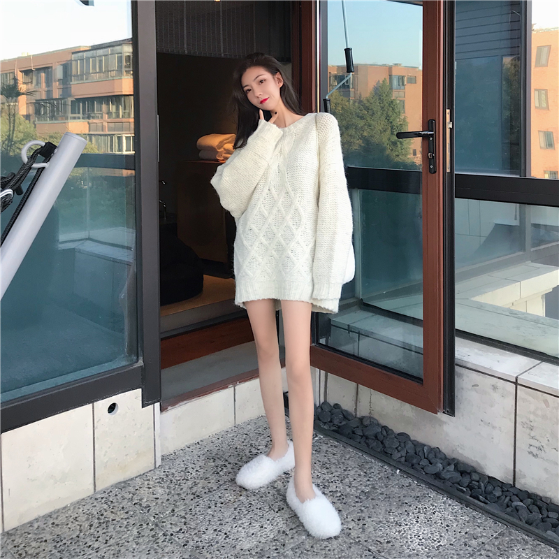 韓版馬海毛寬松套頭毛衣女秋冬2018新款加厚中長款長袖針織衫上衣