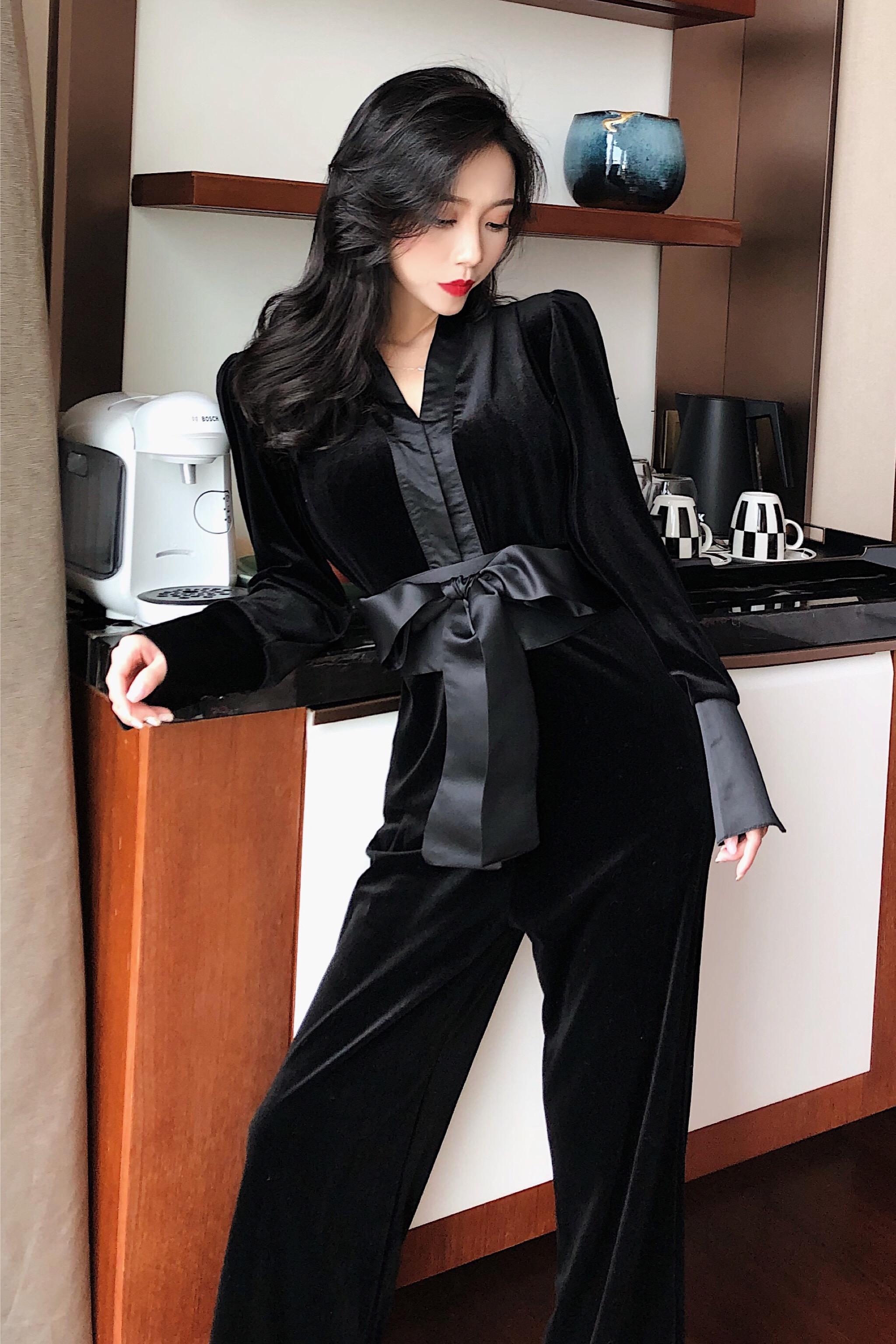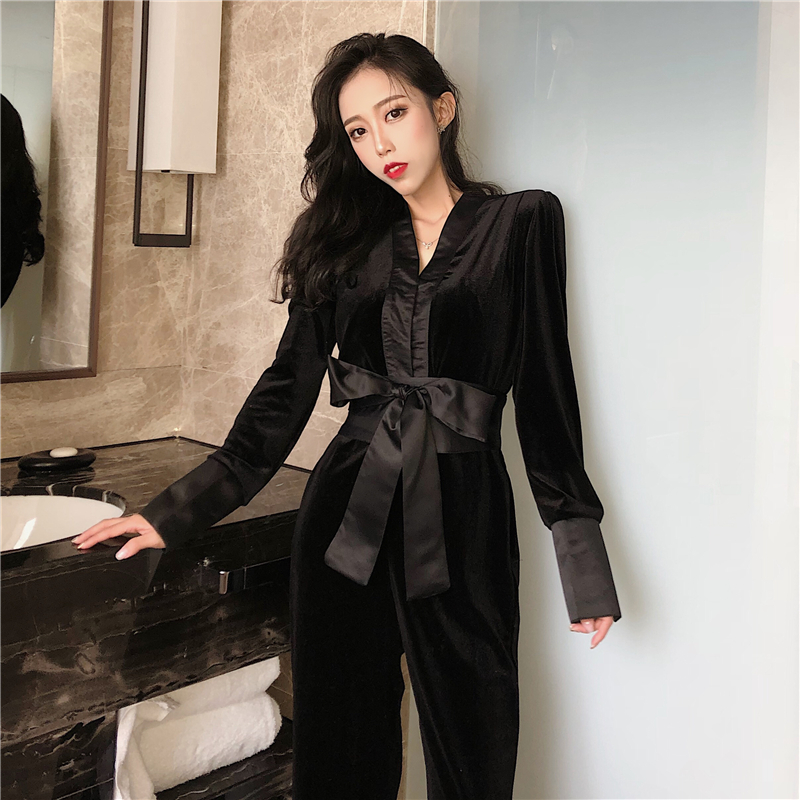 / 秋天港味新款時尚chic百搭溫柔晚晚風復古韓版顯瘦修身氣質連體褲