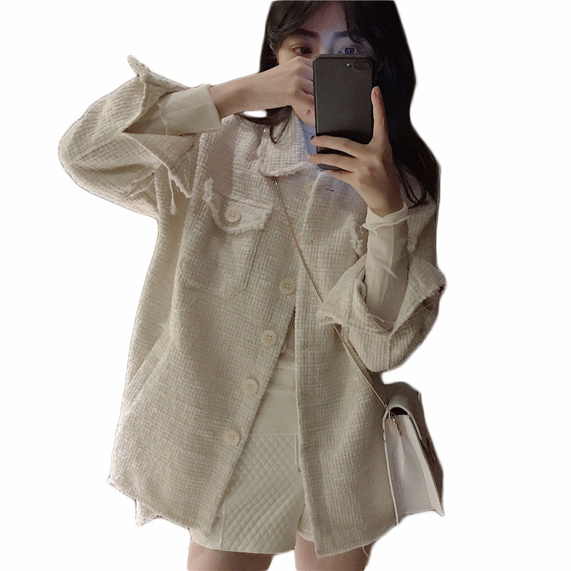 復古溫柔慵懶風隨意暖色系百搭寬松中長款毛呢外套女韓版呢子大衣