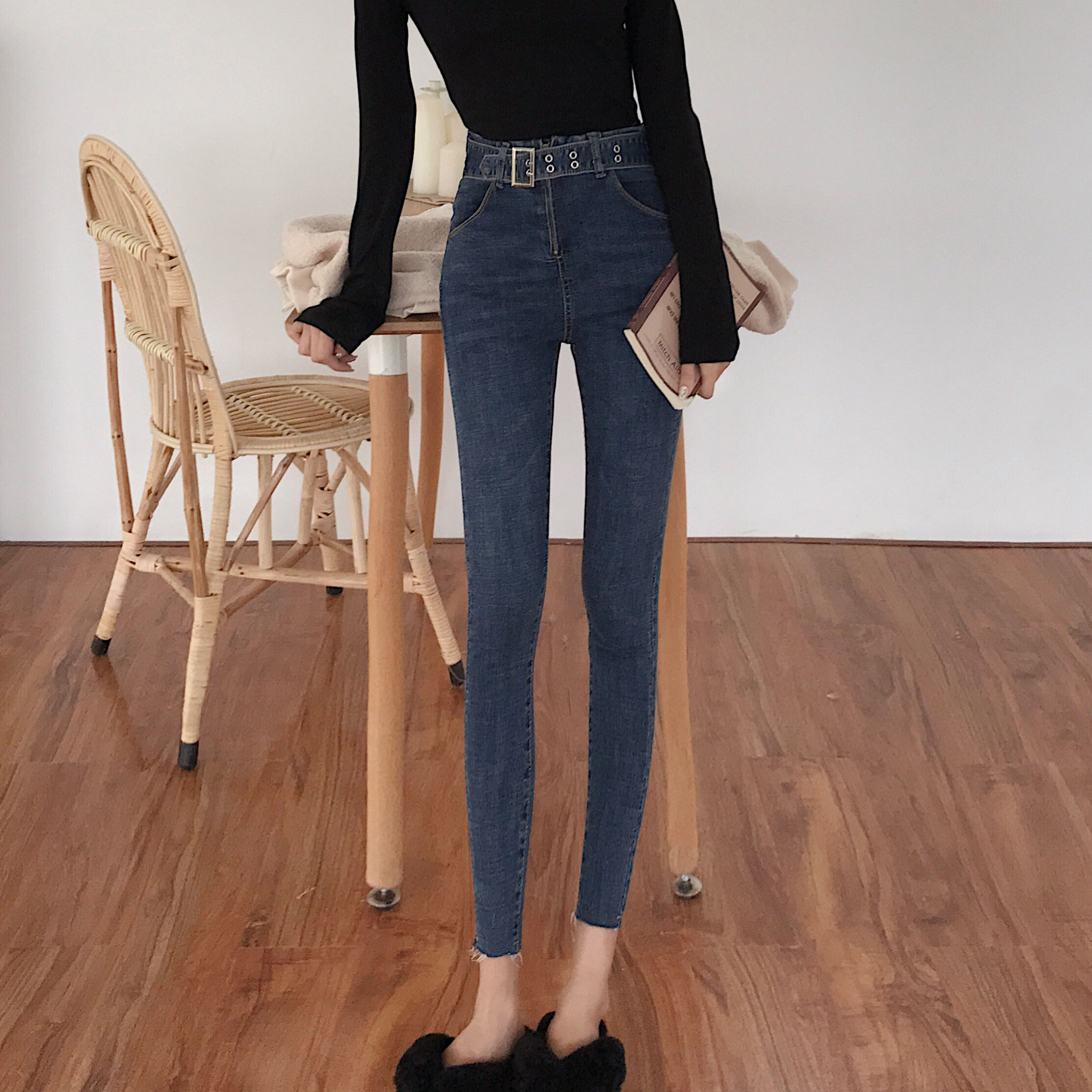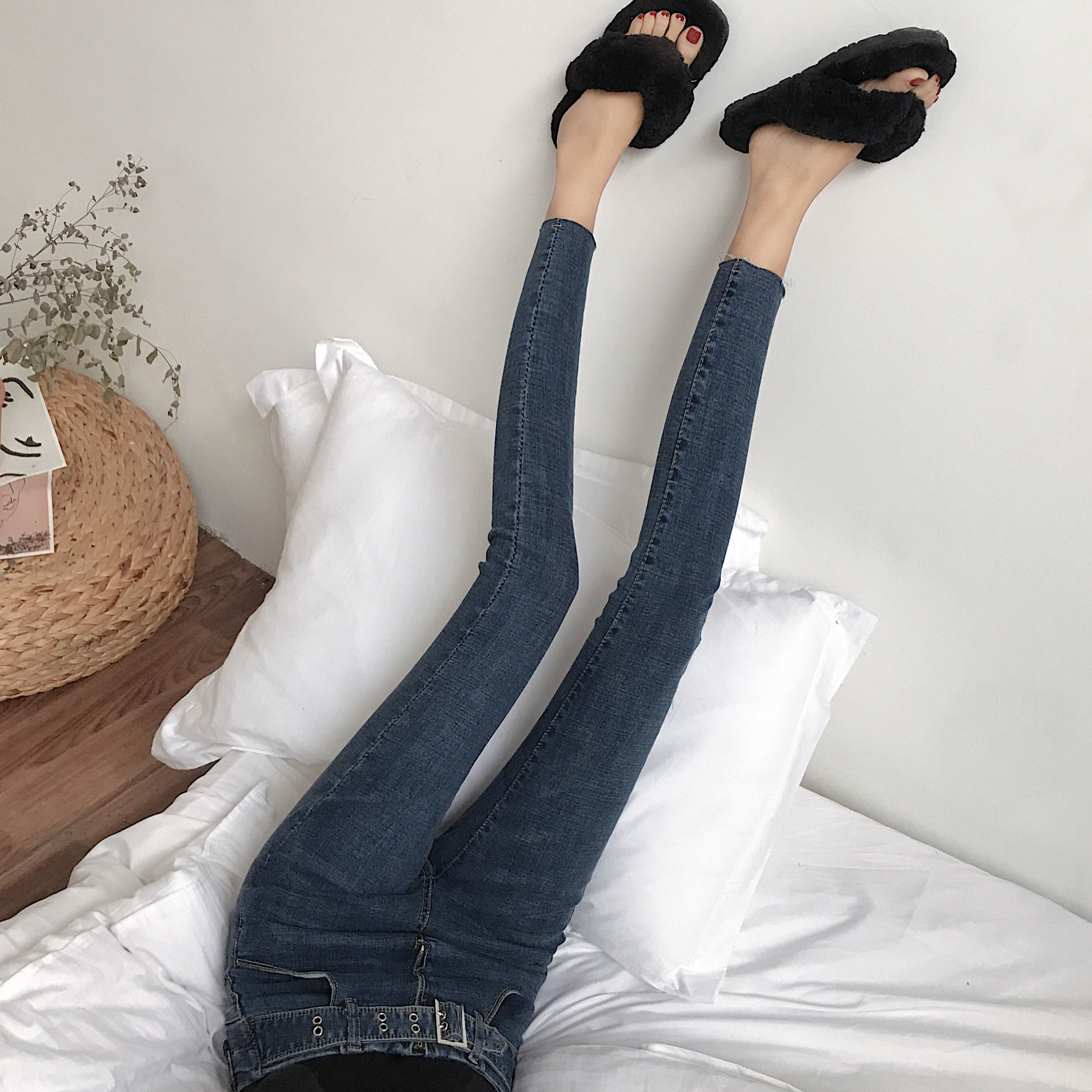 / 韓版chic顯瘦高腰牛仔褲女秋冬2018新款緊身彈力小腳鉛筆褲九分褲