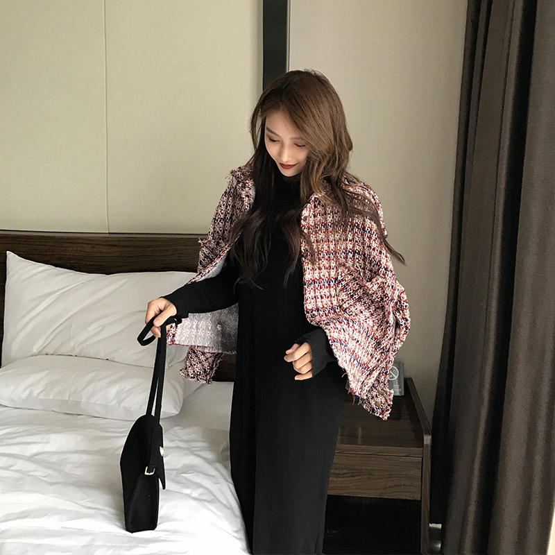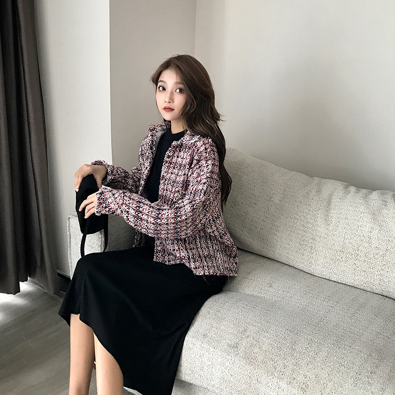 / 小香風秋冬新款粗花呢長袖開衫時尚韓版顯瘦復古chic氣質寬松外套