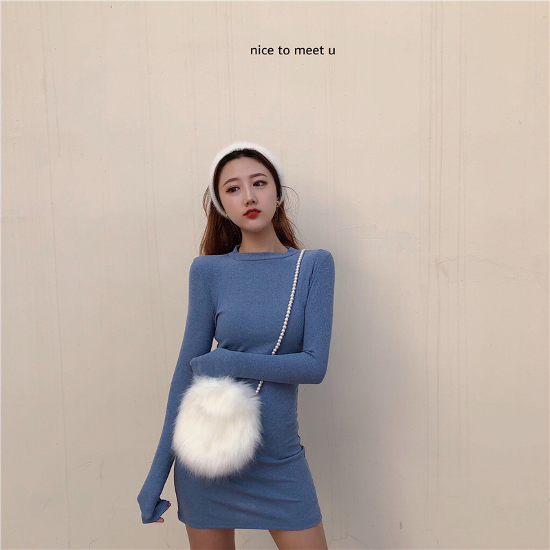 2018秋季韓版新款圓領修身裙子女套頭長袖針織連衣裙包臀打底裙潮